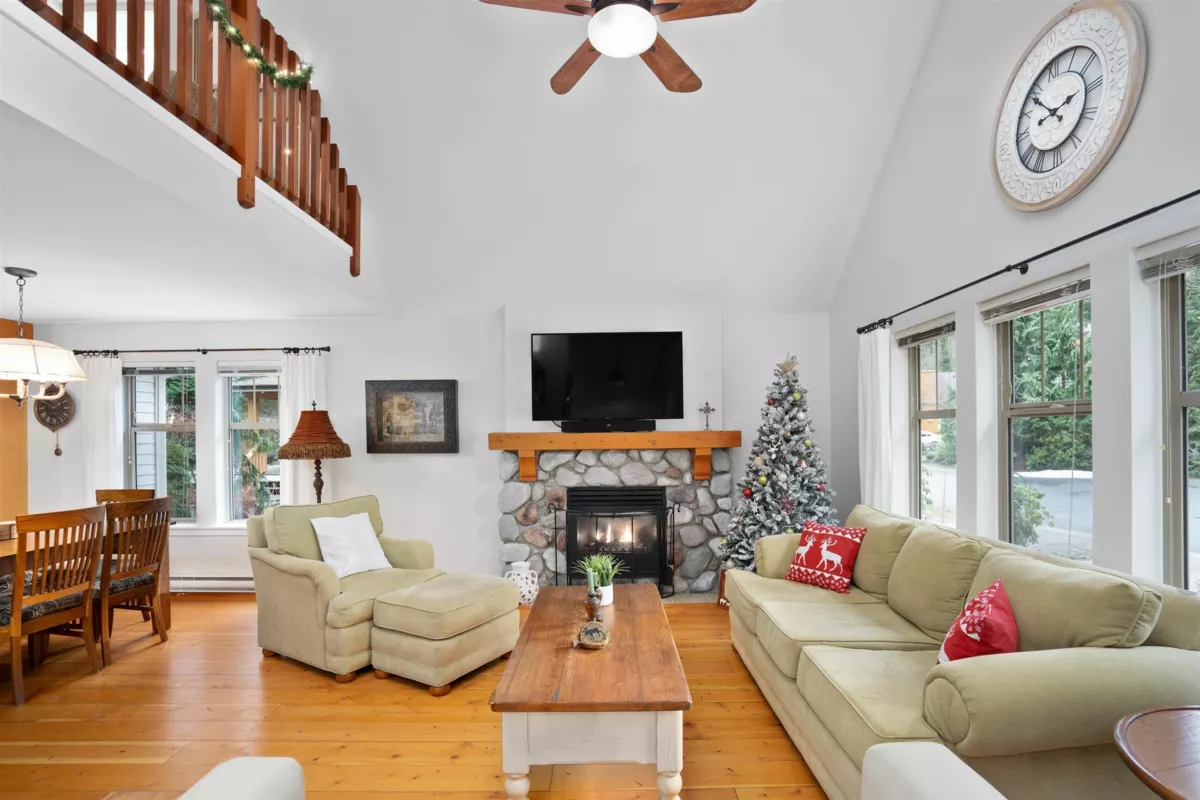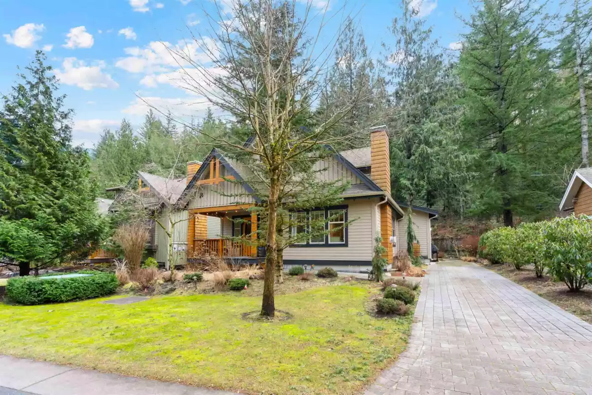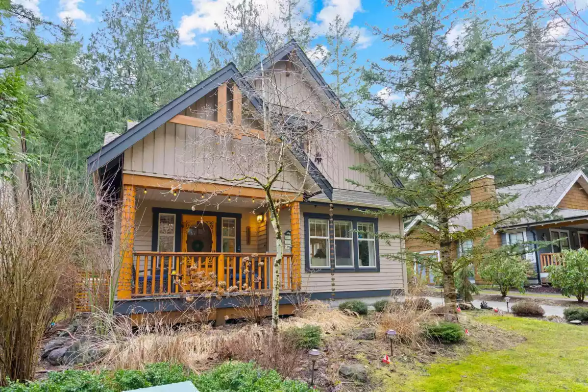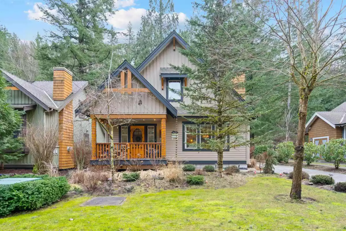 One of the best house at the "Cottages" Welcome home to this well-maintained 2-bed plus loft residence situated on the private perimeter fence of the highly sought-after 'The Cottages' resort style community. This property boasts an outstanding exterior and interior workmanship, featuring an elongated stone driveway leading to a custom stone patio in a secluded wooded area, two generously sized stained decks, a spacious storage area, newly landscaped gardens, and even an electric vehicle (EV) charger. Inside, the hardwood floors span the bright and open space. The property is enhanced with a newer coat of paint, newer kitchen appliances, an added water softener, and potentially comes fully furnished, for a hassle-free move-in.