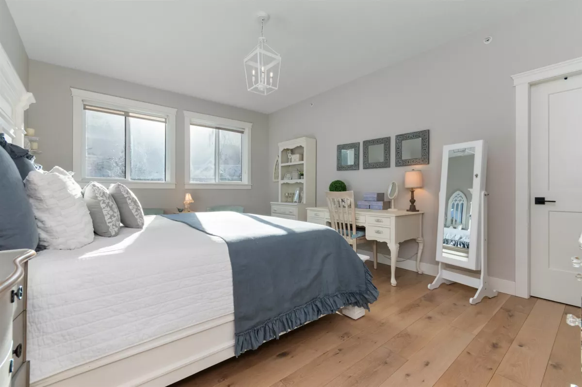 Multi-generational living potential! Located in the resort community of Aquadel Crossing steps away from Cultus Lake. This bright 4 bed luxury home offers two distinct living areas-each with a master suite & private entrance providing separation rarely found in today's market. MAIN level features a Bdrm, Den, and a high end kitchen w Restoration Hardware inspired finishes, quartz counters, dble fridge, slide outs & euro stove. UPPER level has a kitchen area, bright family room, and 3 bdrms including the master suite w/ stunning ensuite with a clawfoot tub & steam shower. Other features include a low maint yard backing onto a quiet greenspace, outdoor fireplace, A/C, Natural Gas bbq hookup & a 5ft crawl space for extra storage. Amenities include pool, hot tub, clubhouse, RV & boat storage.