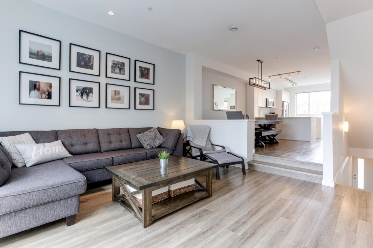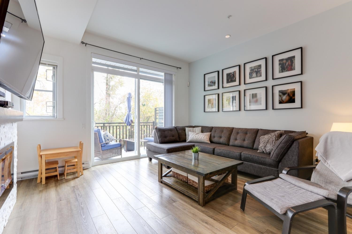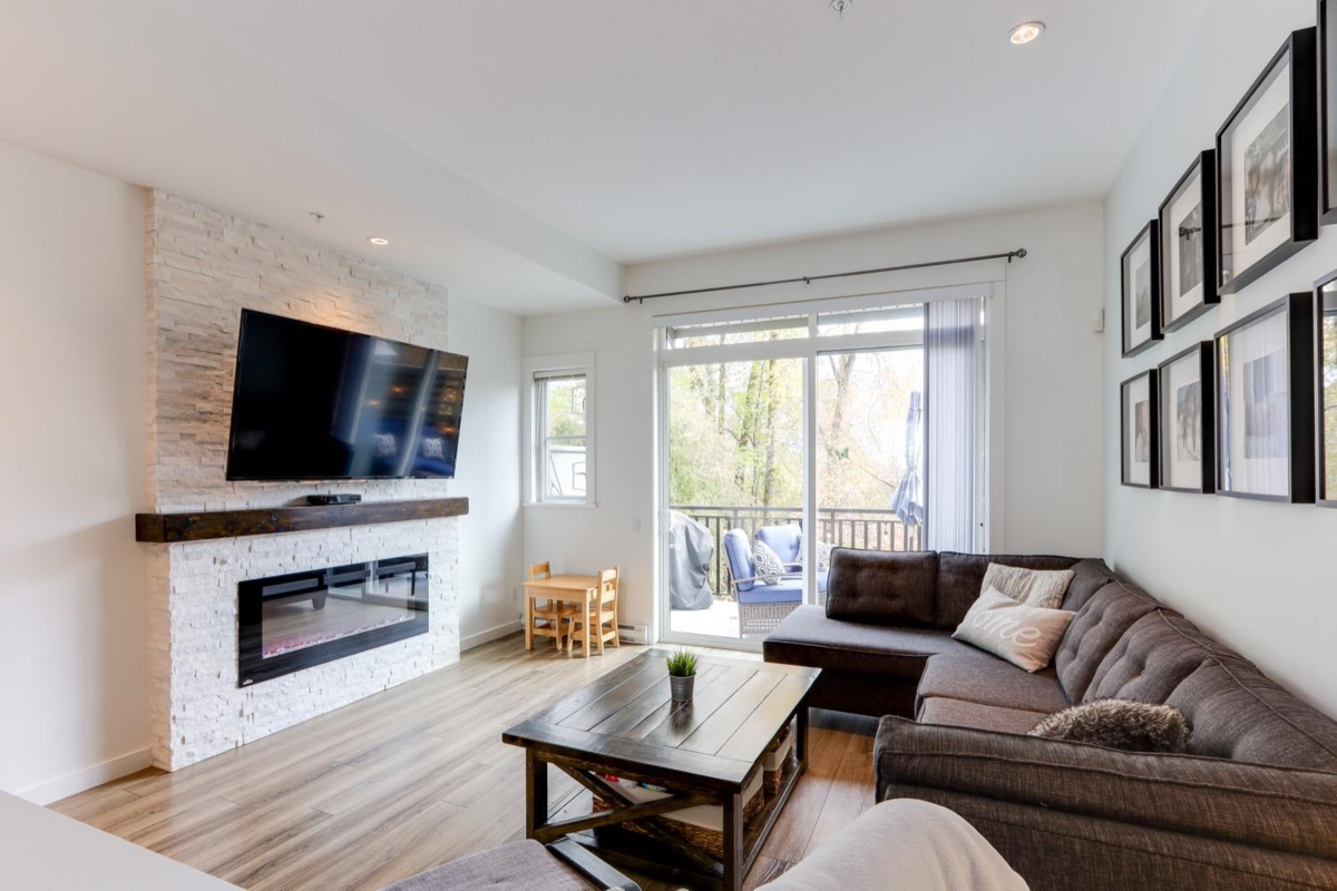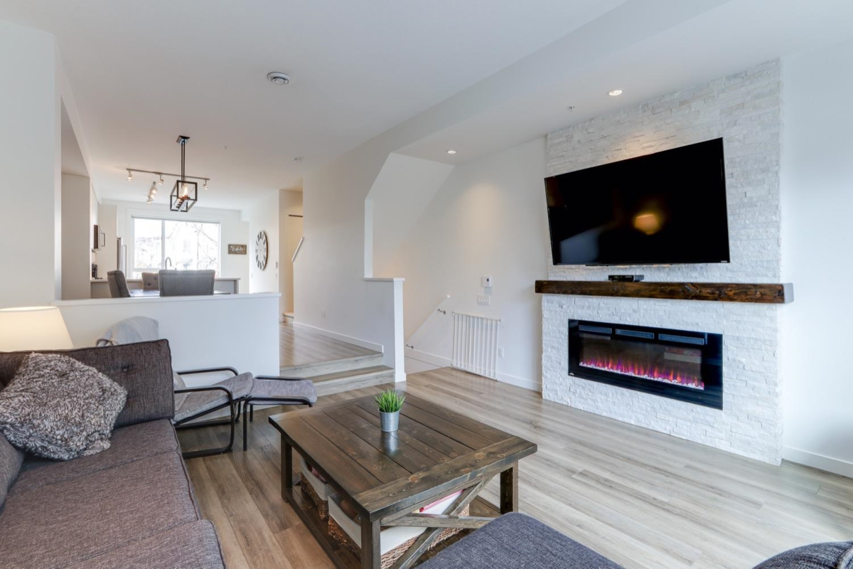FREMONT INDIGO by Mosaic. 3 bed + 2.5 bath home backing onto greenbelt / river. This unit offers an open concept main level with high ceilings and luxury vinyl flooring. Featuring a modern kitchen and dining area that can easily seat 8, quartz countertops, large kitchen island, stainless steel appliances, built-in closet storage, and a Napoleon electric fireplace with stone feature wall in the living room. Finished 2 car garage w/Epoxy floors, custom storage and ample room for a gym, workshop, bikes, and strollers—plus a large 2nd patio. Enjoy the “River Club” gym, ball court, outdoor pool & more! Steps to the Traboulay Trail and walking distance to schools, parks, nearby shops, cafes, breweries + restaurants @ Fremont Village. Minutes to Hwy #1. CALL YOUR REALTOR TO BOOK AN APPOINTMENT.