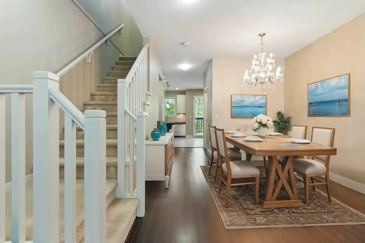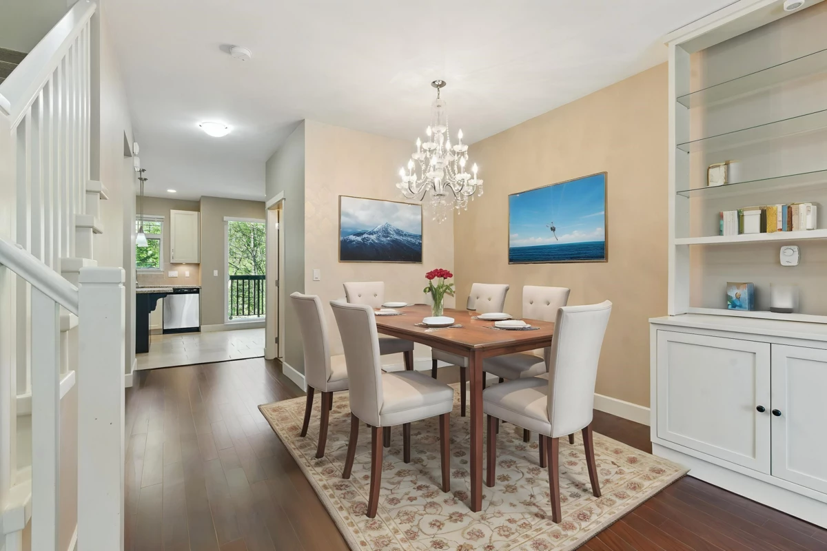 Welcome to Enclave – one of South Surrey’s most desirable communities! This beautifully maintained 3-bedroom, 3-bathroom townhome offers a functional and stylish layout. The elegant kitchen features classic white cabinetry, a gas range, stainless steel appliances, and a large center island—perfect for entertaining. Enjoy the open-concept main floor with a cozy living room complete with custom built-in cabinetry and a convenient powder room. Upstairs you'll find full-size laundry, three generously sized bedrooms, and two full bathrooms. The oversized tandem garage provides extra space for a home office, gym, or potential fourth bedroom. Enjoy gardening or relaxing in your own private yard. Located in the catchment for Sunnyside Elementary and the highly regarded Semiahmoo Secondary.
