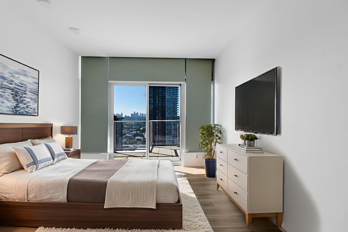 Welcome to Triomphe! Experience breathtaking 260-degree views of the water, city, and mountains from this stunning penthouse offering 2 bed +den & 2 bath.Delight in the expansive 468 sqft of balcony space, perfect for entertaining against a backdrop of picturesque scenery.This exquisite residence boasts 9'3" ceilings & floor-to-ceiling windows that create an airy ambiance. The chef’s kitchen features a breakfast bar & stainless steel Bosch appliances. Both bedrooms enjoy spectacular views with access to the balcony, while the master suite includes a luxurious 5 piece ensuite equipped with his & her sinks and a relaxing soaker tub.Take advantage of exceptional amenities, including a 13,000 sq ft outdoor pool,hot tub, fitness center, yoga room,.. Plus, 2 large side by side Parking & Storage.