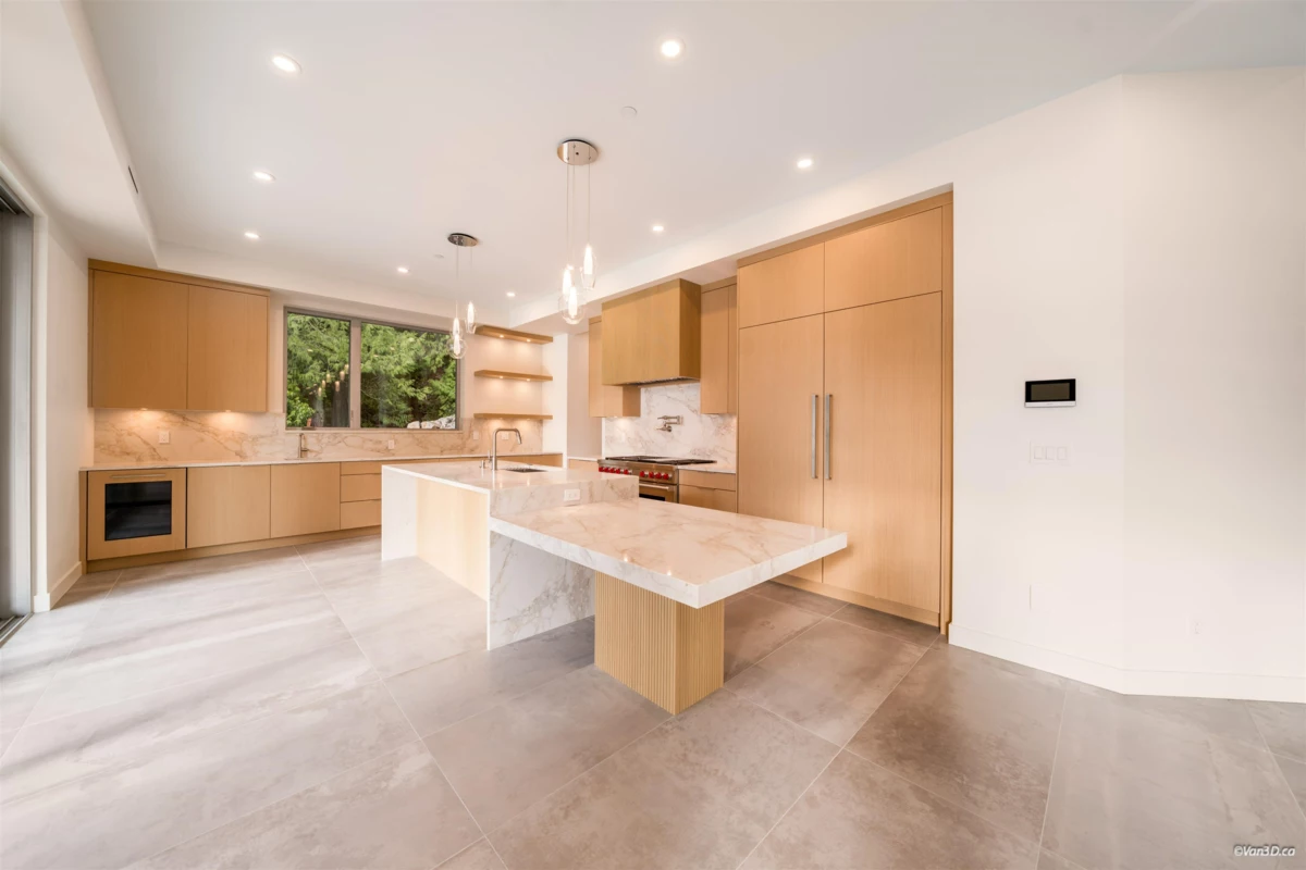 Design by Vesna Molby & Co. Featuring superior workmanship with high quality materials and finishing by MKL Custom Homes. Spacious and sensational floor plan on a 14,143 SF lot captures indoor/outdoor coastal living. An open tread staircase interconnecting the three levels. Fluted white oak millwork features throughout. Formal and family rooms open to patio and Cove view to UBC. A soothing gas fireplace in living room with view of morning light filtering down into the headland of Caulfeild Cove. A total of 4 en-suite bathrooms, 4 on upper floor, 1 in basement & a powder room on main. The master bedroom en-suite features a Zen soaker tub looking out over the cove view. The kitchen and family room flow through sliding doors onto large, covered deck with gas hook up for outdoor kitchen.