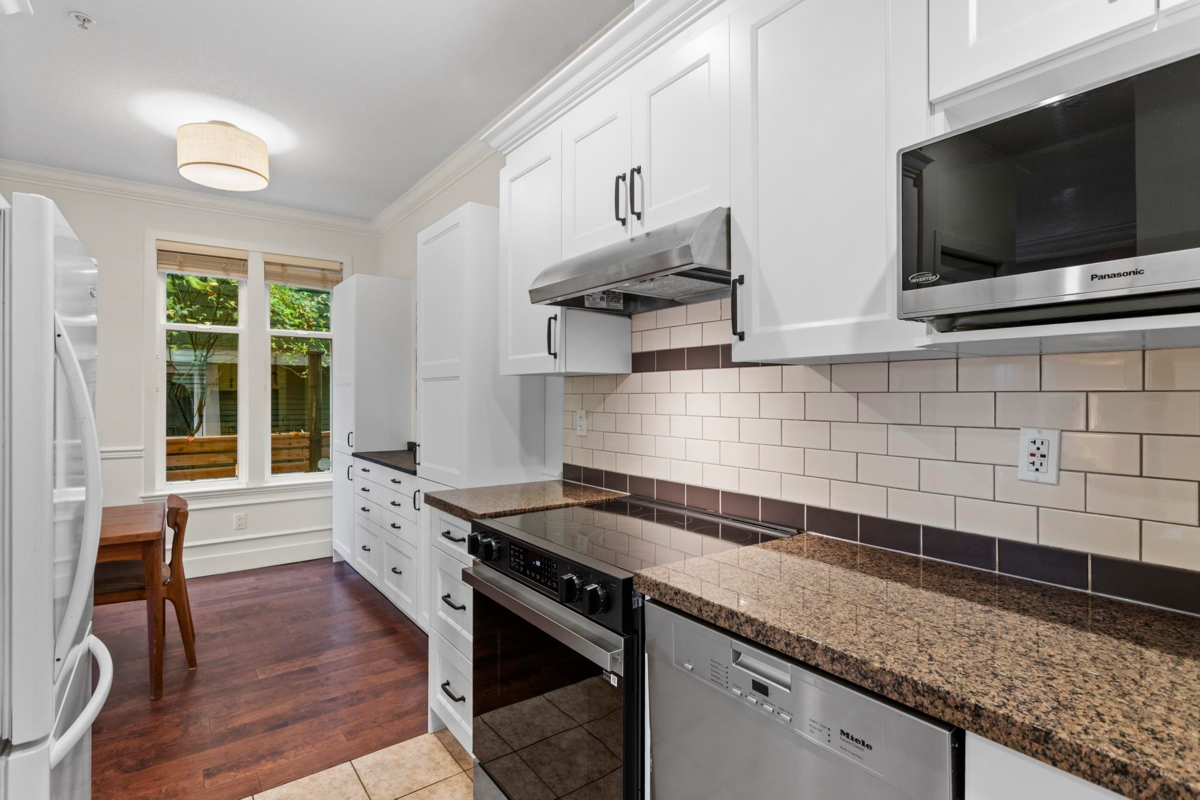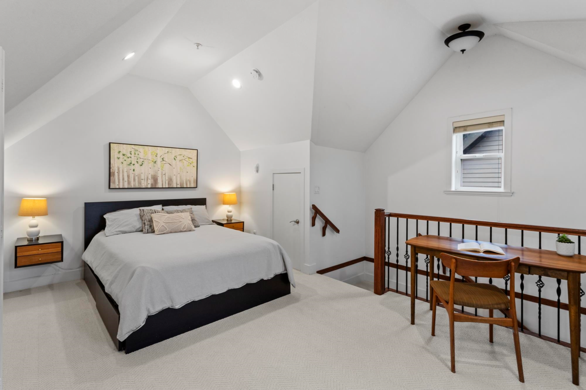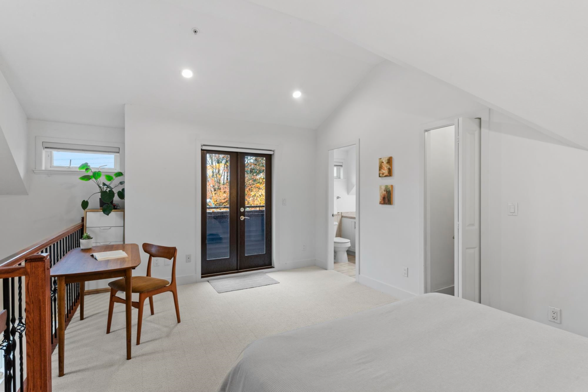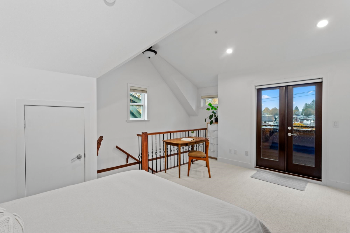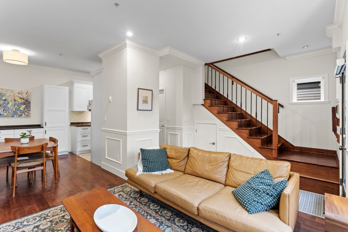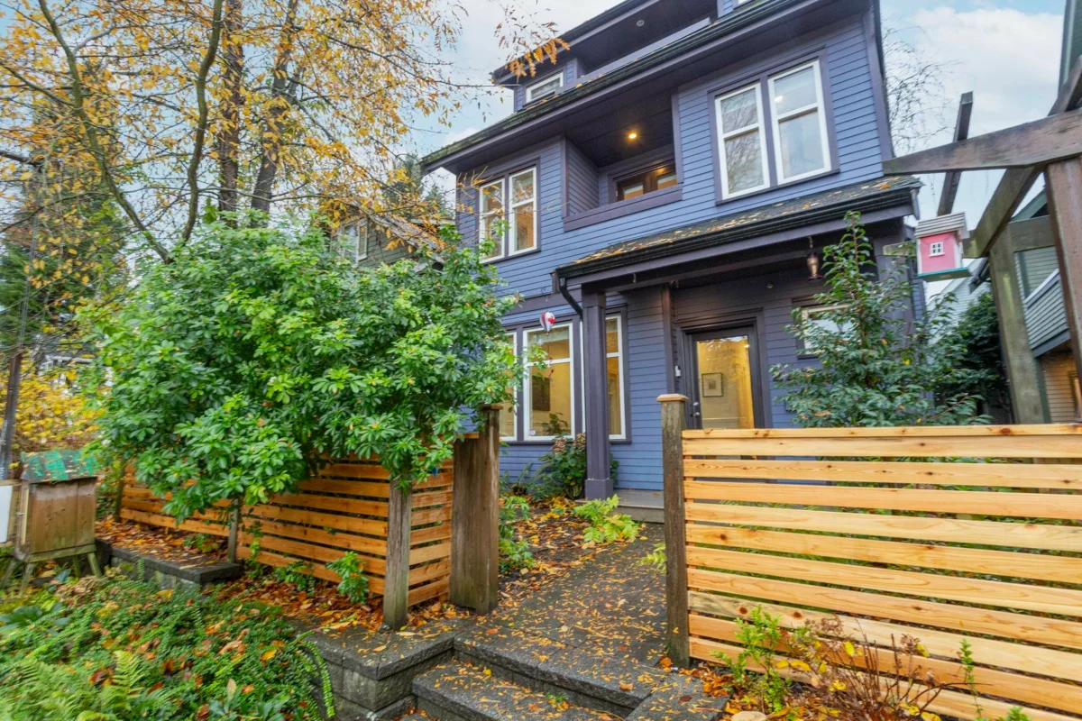 This front 1/2 duplex is a rare find, located on a quiet, family-friendly street. Architecturally designed by Birmingham & Wood, 'Welwyn Mews' is an exclusive collection of 5 craftsman-style homes. The home feels bright and spacious with an open-concept main floor, powder room, and S/S appliances. The 2nd level features 2 bright bedrooms and a full bath. Ascend to the 3rd-floor primary suite, a private oasis with soaring ceilings, an ensuite, a private deck, and scenic views. Enjoy the private fenced garden and easy access to the best of the city. BONUS: Single detached garage! Steps to great schools, parks, and transit, with a quick connection to downtown and Commercial-Broadway. Book your private showing today! Join us for our first open house Saturday February 7th from 2-4 pm.