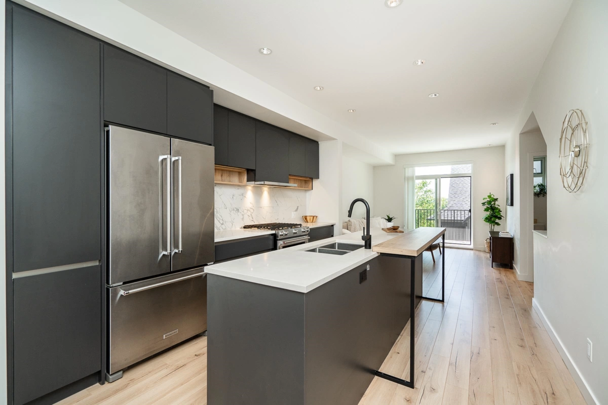 Outstanding opportunity to own this stunning, modern Scandinavian-inspired townhome at Aalto by Intracorp – located in the heart of Coquitlam. This 4 bed, 4 bath home features 1,656 sq/ft of living space and a spacious, bright + open layout. Main offers a gourmet kitchen w/ stone counters, flat panel cabinetry, SS appliances + access to private balcony. Large open concept living + dining room & powder room complete the main. Upstairs you'll find 3 beds including the primary w/ en-suite plus a second full bathroom. Side-by-side double garage w/ EV charging installed. The location is incredible - situated within minutes to Coquitlam Centre Mall, Lafarge Lake, transit, schools, parks, shopping and more. World class amenities including gym, great room, playground, fire pit and more!