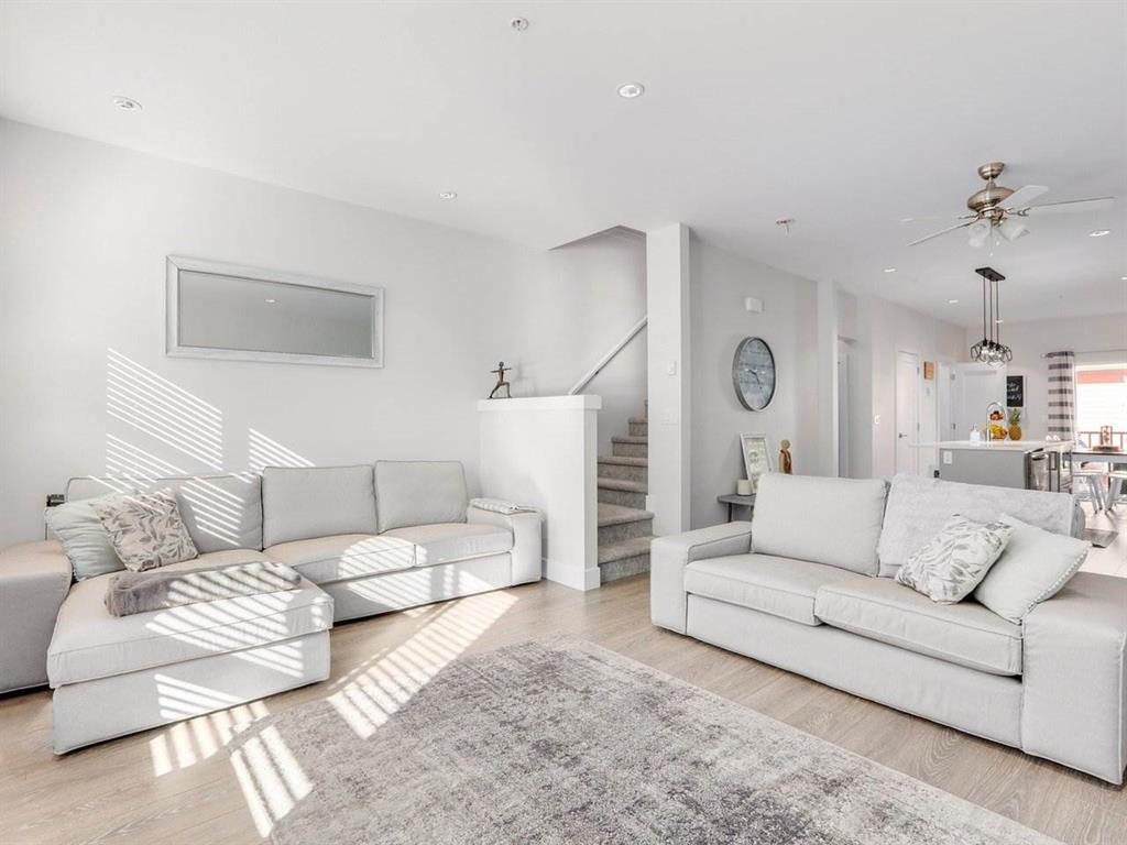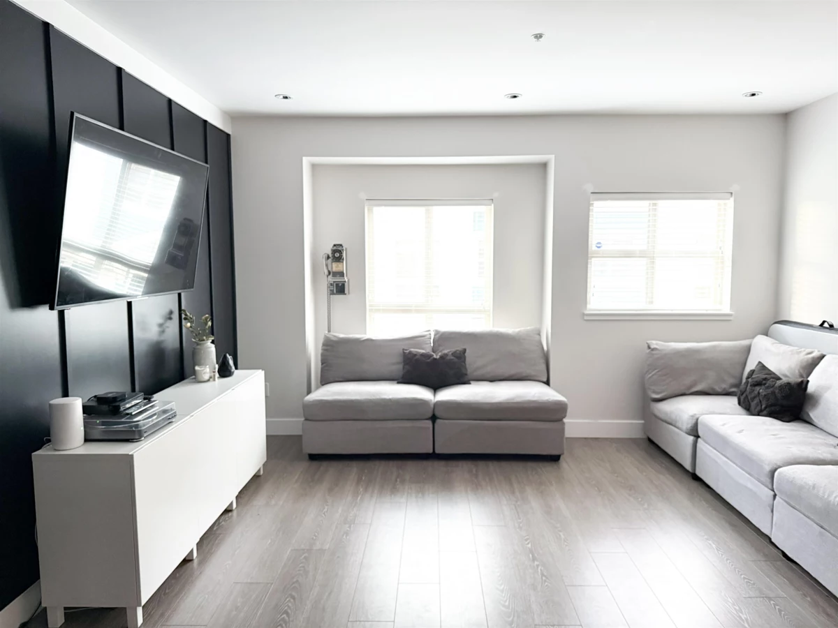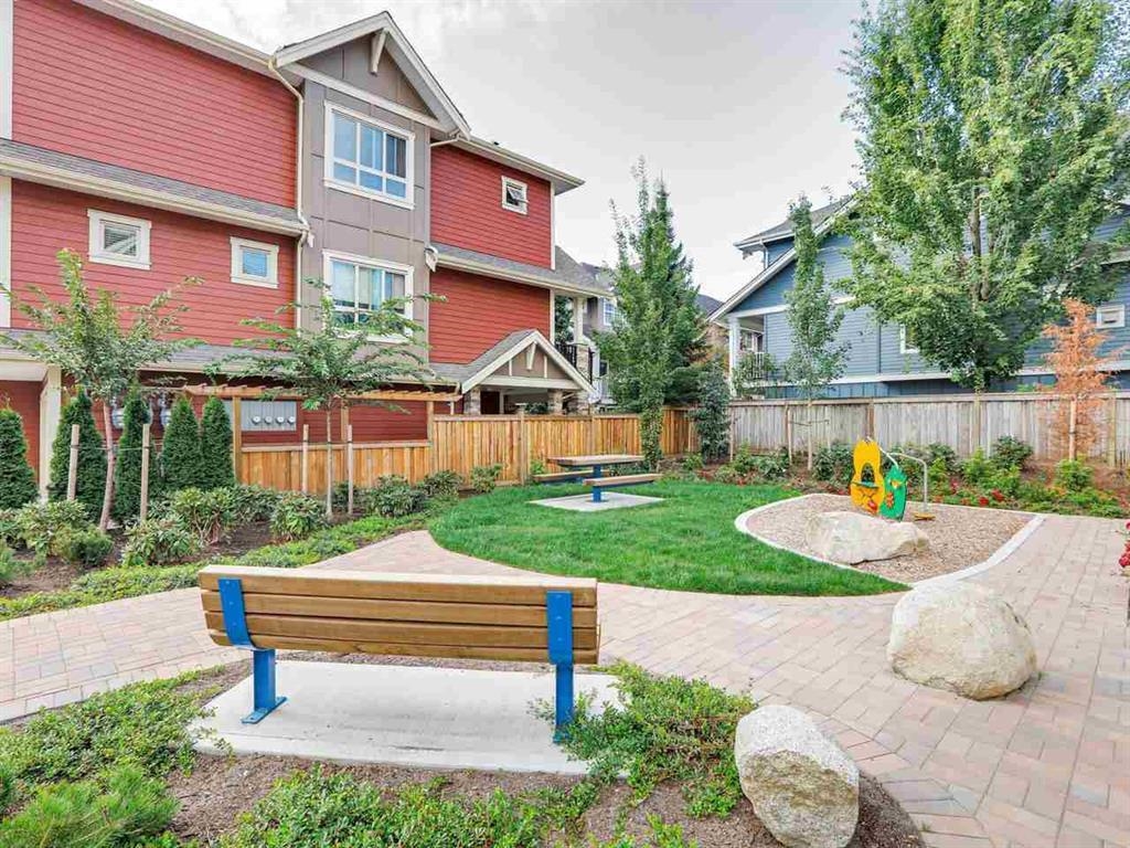 PRIME ,quiet inner courtyard location! This pristine, 3 bedroom, 3 bathroom, 3 level home at THE EWEN is "SHOW HOME" quality with numerous luxury upgrades & features a newly landscaped fenced yard with decorative stonework & HOT TUB! Stay cool with your AC heat pump! Super 9 ft ceilings, open concept kitchen, quartz countertops, SS appliances, center island , custom pantry & DINRM cabinets & lighting. Dramatic black accent wall in DINarea. 3 bedrooms up with spotless full ensuite bath in PBDRM. Insuite laundry. Dream double tandem garage with epoxy flooring & floor to ceiling storage cabinets. This craftsman styled TH complex is on the bus line, across from parks & school & walking distance to Queensborough Landing shops. Pet Friendly with playground for the kids!