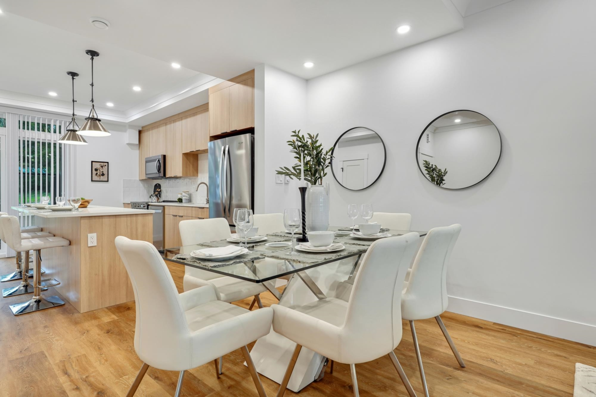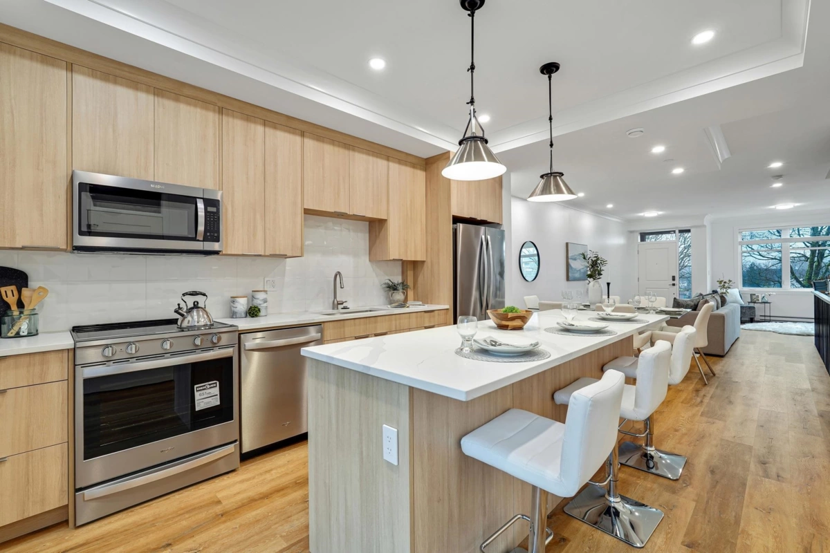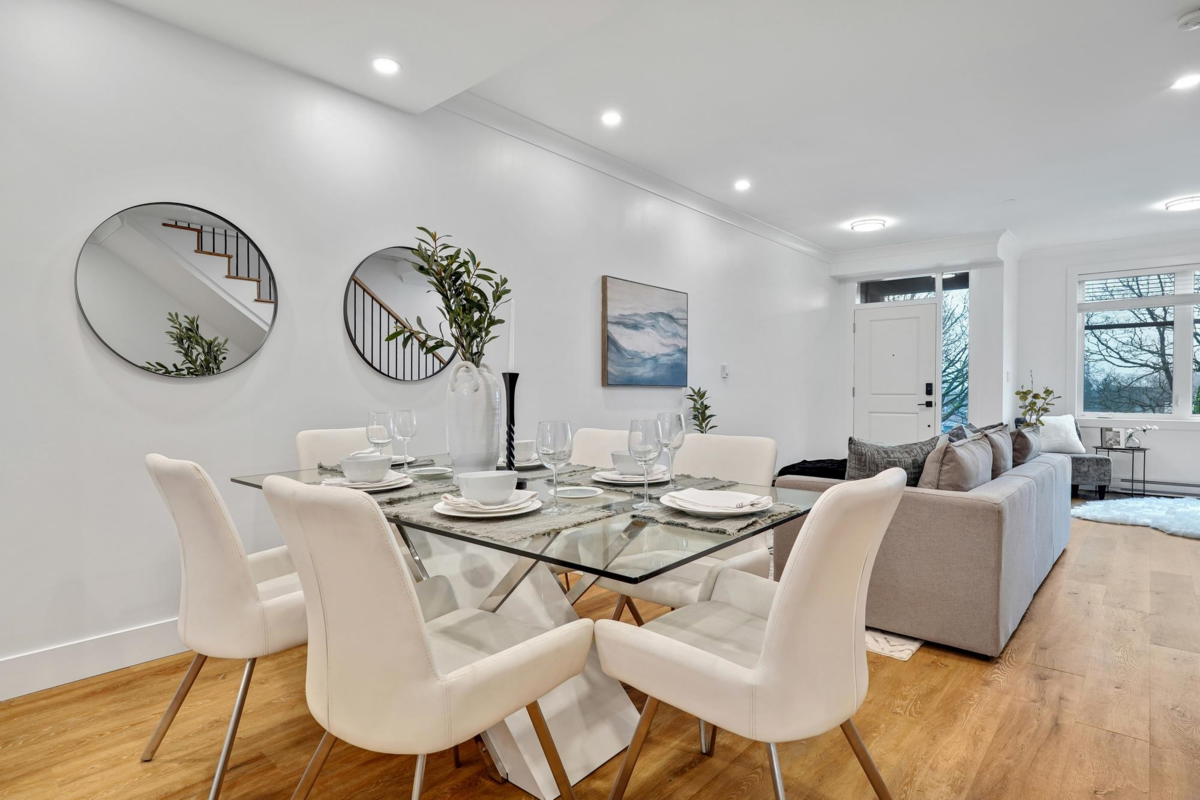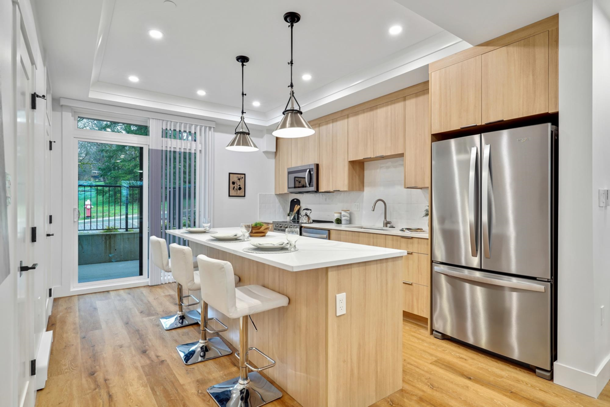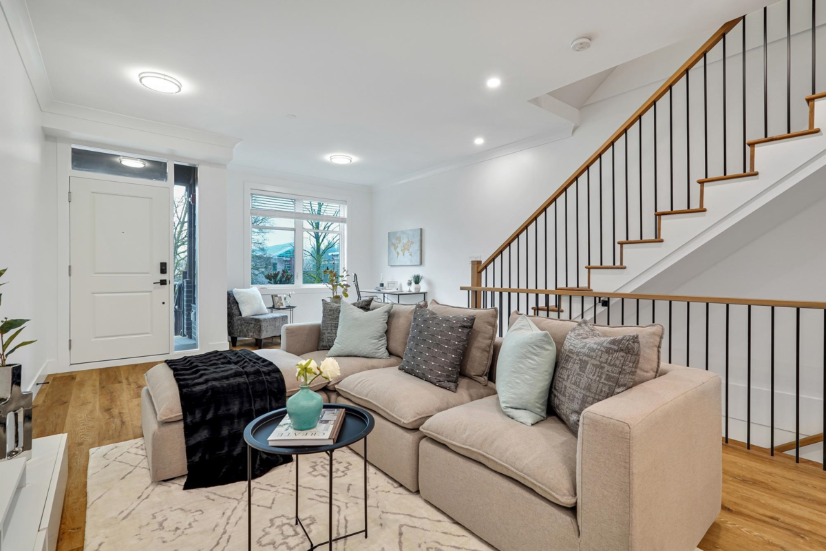 This brand new rowhome has everything you need for your perfect home! Three beds & four bath plus a rooftop patio! The main floor is an open concept w/ a spacious foyer, large windows, high ceilings, fabulous powder bath, entertainer's kitchen w/ s/s appliances, pantry for extra storage & a garburator for added convenience. Upstairs a large primary bedroom is attached to a spa-like ensuite. Full size laundry, two additional bedrooms, and a spacious main bathroom. The top floor leads to a rooftop deck with views of a serene park perfect for summer BBQs, play area for kids, and morning yoga with a bonus flex room for yoga, exercise, meditation or more. The basement has a large flex space, including a den and bathroom, perfect for a growing family. Comes with 2 parking and Level 2 EV Ready.