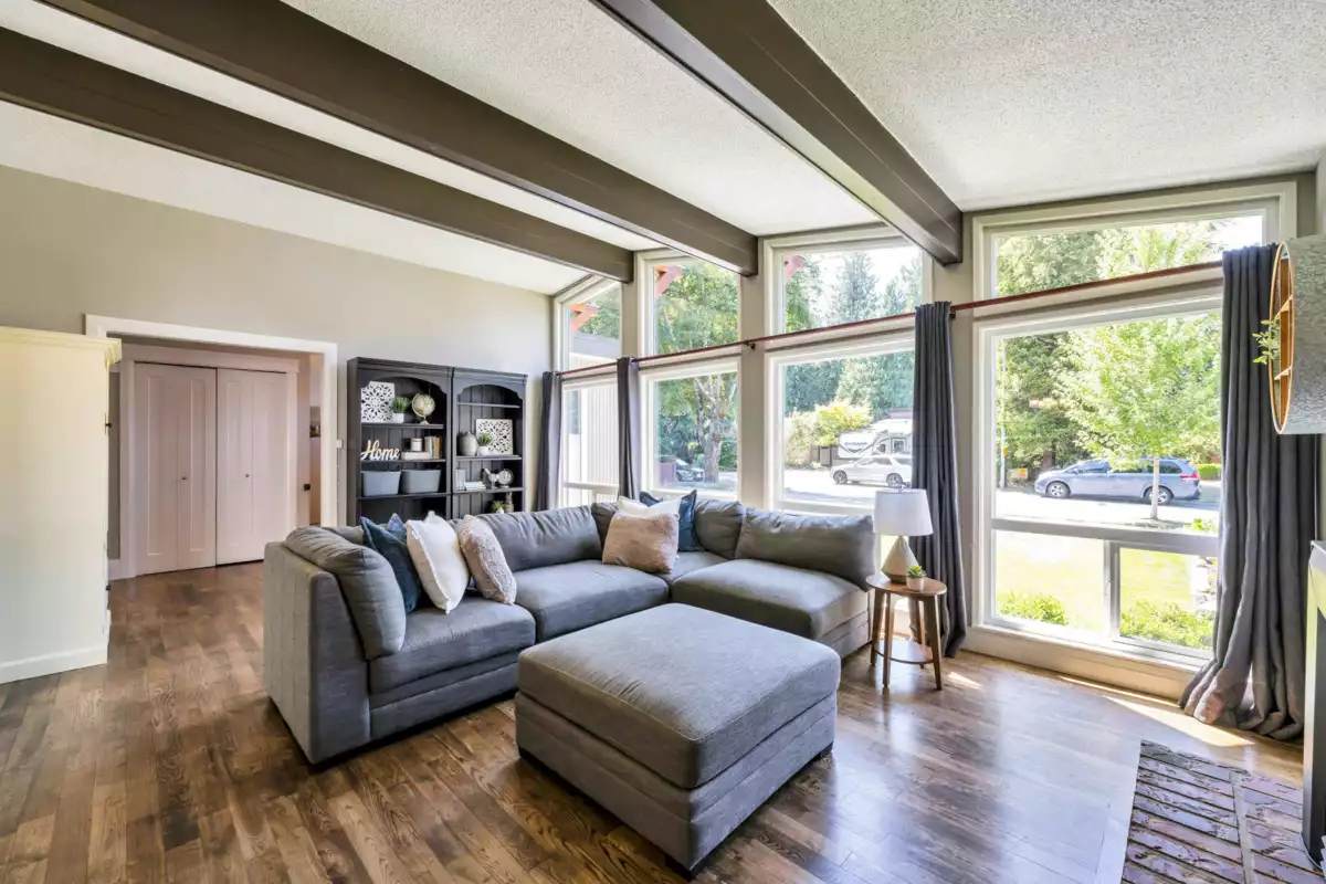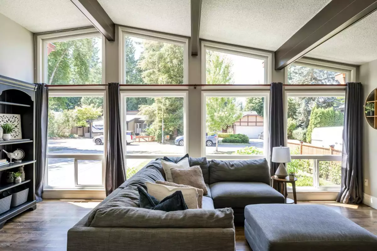 Attractive Mossey Estates "West Coast Modern" home w/ bright & open floor plan. Main floor boasts vaulted ceilings & exposed beams, hardwood flooring, oversized windows, spacious living room w/ gas fireplace, & adjacent dining area. Kitchen w/ white shaker cabinets, quartz counters, stainless appliances, & french door access to the large, covered deck & private rear yard; enjoy summer BBQs & family gatherings! Family room w/ gas fireplace & yard access, bedroom, laundry, powder room, & mud room. 4 bedrooms up incl primary w/ 4 pc ensuite, & 5 pc main bath. Many tasteful updates incl. kitchen, bathrooms, doors, millwork, lighting, & more. Central A/C & on-demand hot water. Double garage & extra wide driveway. Great location near schools, parks, George Preston Rec Centre, dog park, & trails.