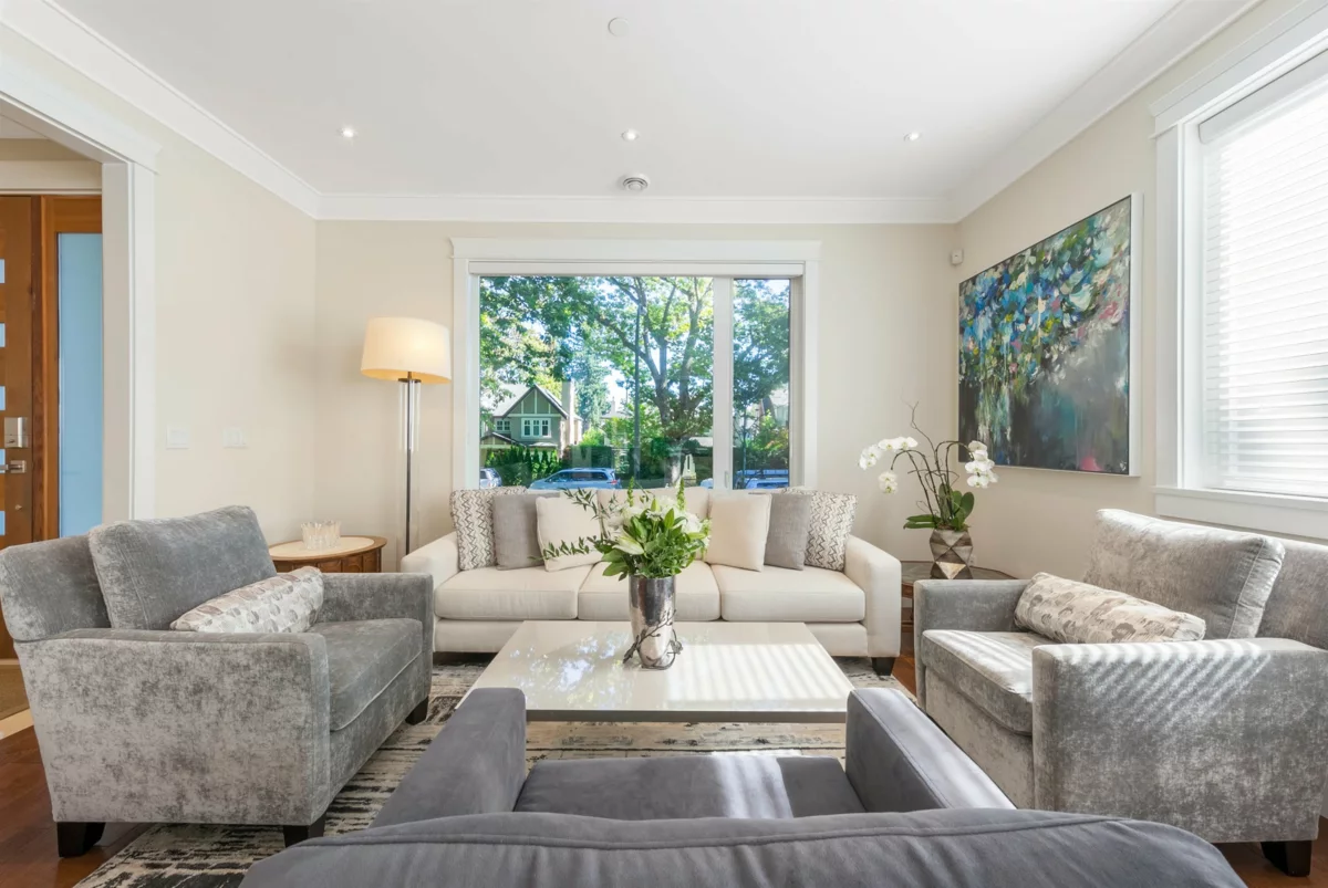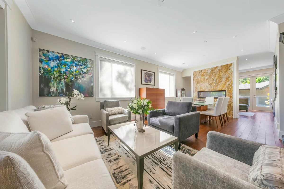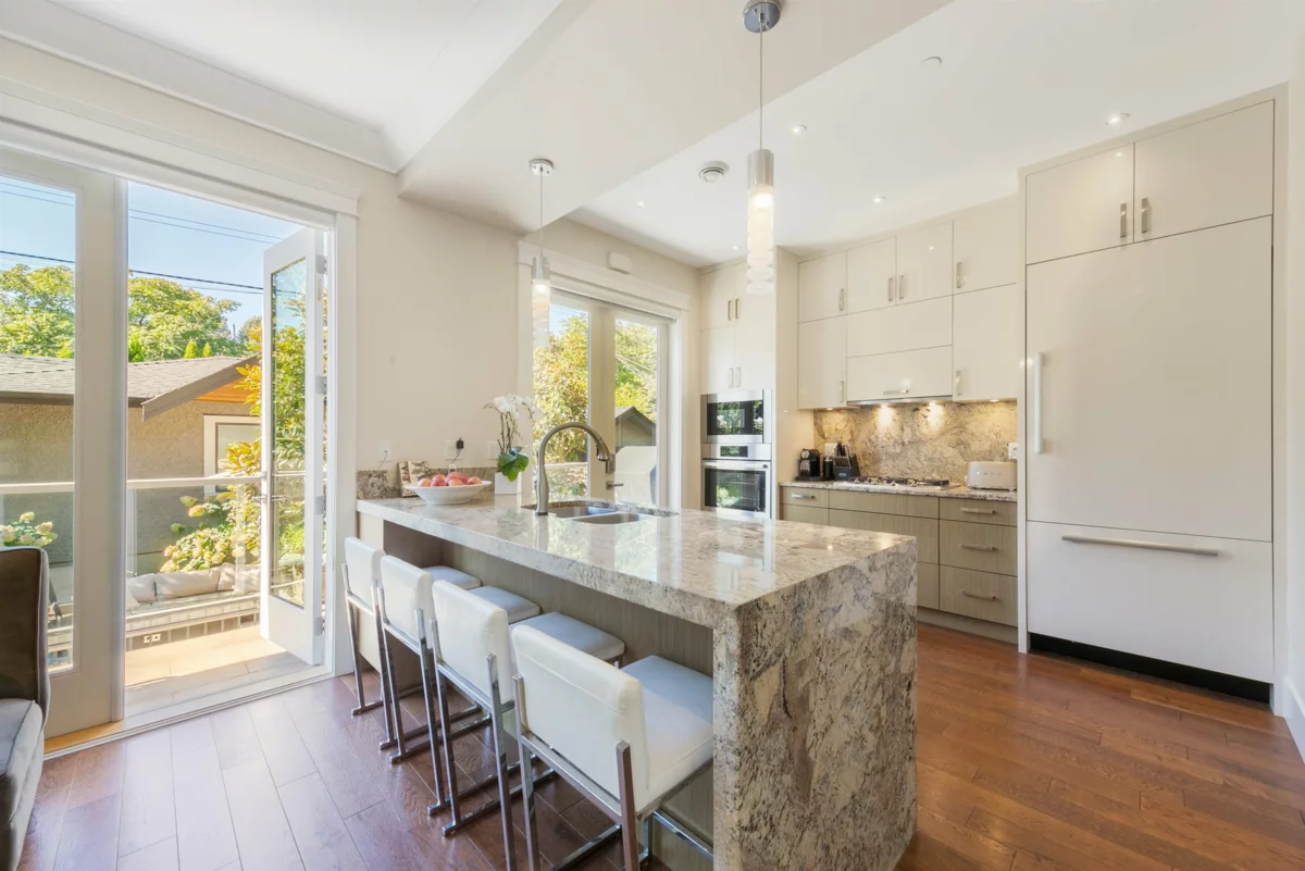 Welcome to this picture perfect family home-ready to move in! Architecturally unique home with modern interior design in the heart of Dunbar. Incredibly energy efficient with A/C, HRV, radiant heat, & real hard wood flooring.The gourmet kitchen boasts Miele appliances, storage, and a magnificent island perfect for morning coffees. Adjoining family room has double French doors overlooking a lovely maintenance free garden. Entertainment size liv rm and din rm with gorgeous marble faced gas f/p. Three bedrooms up- primary bdrm with spa like ensuite, sundeck, & walk-in closet. Bonusdownstairs large media room, plus 1 bdrm legal suite. Southwest exposed sunny backyard with double garage & extra parking. Sought after location, close to exclusive private schools. Book your private showing now.