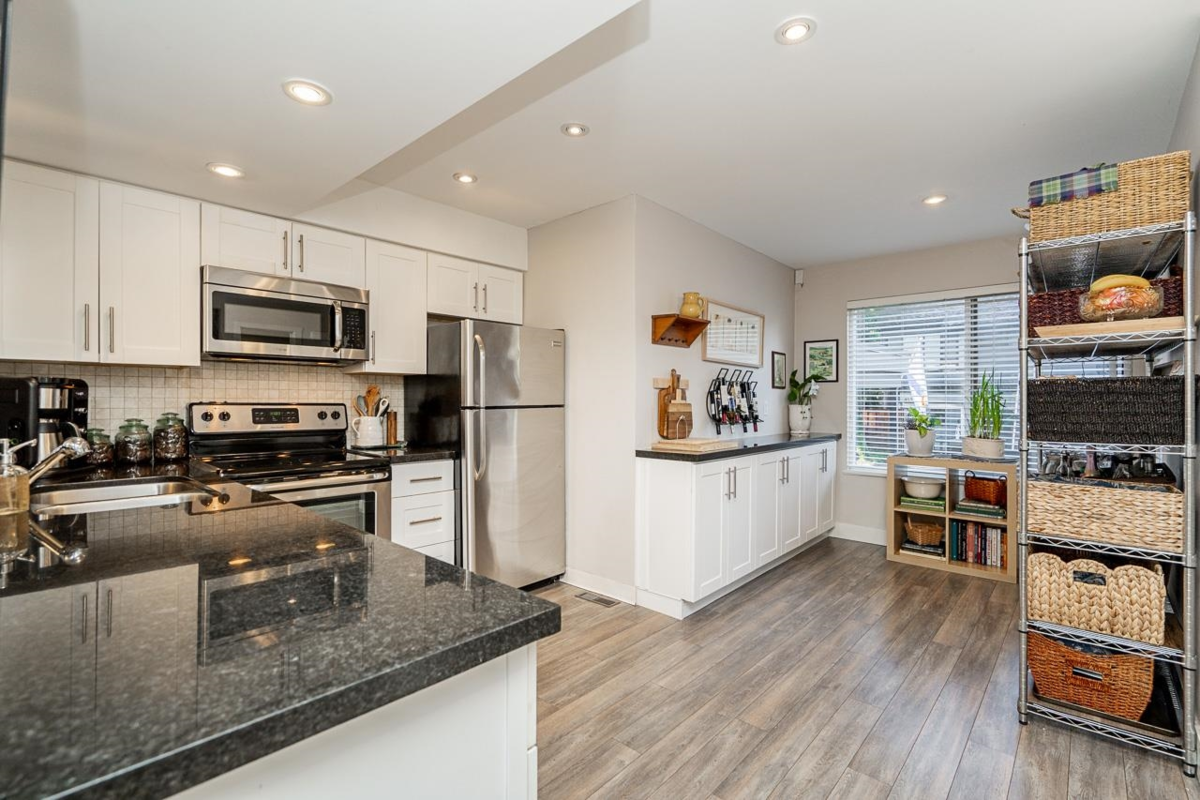 Prime Greentree Village end-unit corner townhome in a quiet cul-de-sac, backing onto mature green space & close to Greentree Park. Beautifully updated throughout: kitchen w/granite counters, s/s appliances, cozy fireplace, & excellent natural light from updated windows. 3 bedrooms, including a primary w/ensuite & walk-in closet, 2.5 baths, plus flexible lower-level family room & great storage. Enjoy private outdoor living in the peaceful backyard patio. Updates: roof (2013), windows/doors/electrical/plumbing (2014), furnace (2021), cedar fencing (2022), exterior paint (2023), hw tank (2025). Strata includes membership to indoor pool, sauna, exercise & party rooms. Close to Hwy 1, Deer Lake, Metrotown, BCIT, Brentwood & Costco. OPEN: Thurs 5–6pm, Sat/Sun 1-3pm
