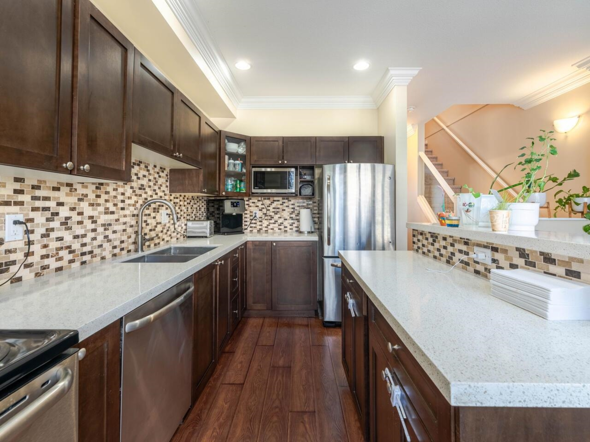 STUNNING 3 bedroom, 2.5 bathroom townhouse in the BEST location within Eagle Crest Estates which is in the BEST location in Queensborough! RARELY do homes ever come on in this QUALITY, LUXURY built complex! AWESOME west facing backyard that is a stone's throw from the Fraser River! TONS of upgrades done from GORGEOUS stone kitchen counters, BEAUTIFUL flooring, S/S appliances, bathroom updates and so much more and was also just FRESHLY painted! EXCELLENT layout with such wants like a half bathrooms on the main floor, all three bedrooms up with two full baths as well as the laundry and a MASSIVE garage with the end of it currently used as a gym! QUIET and SERENE area as you can walk right out your door and be on the trail along the river yet still be close to everything one needs! Be quick!