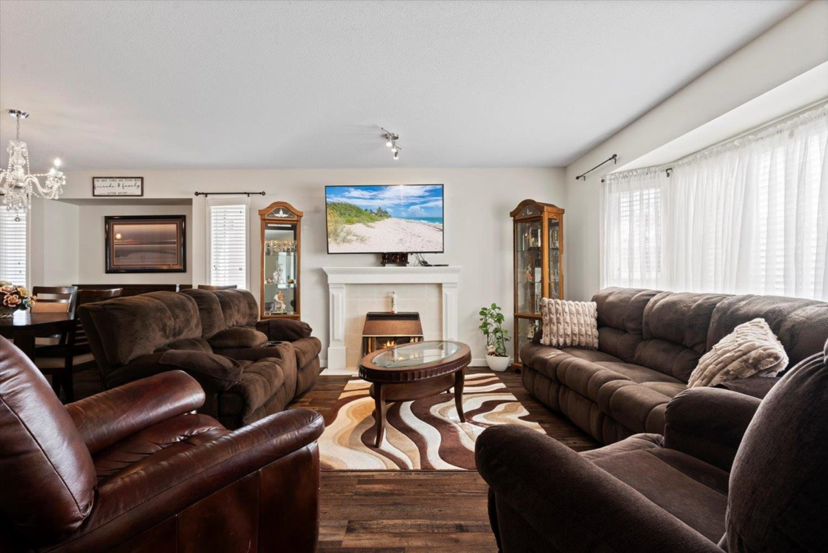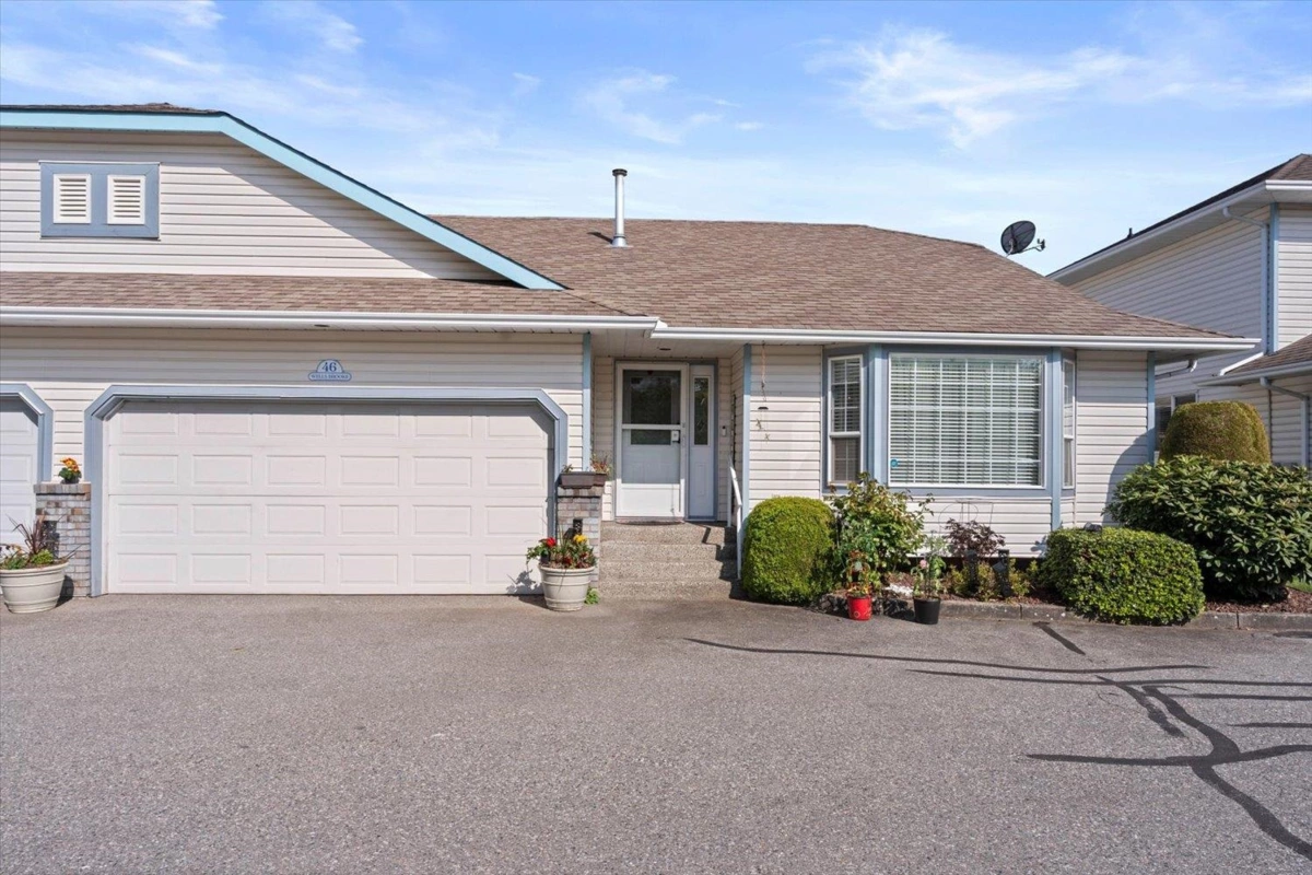END UNIT 55+ RANCHER TOWNHOME! Enjoy peace and privacy in this quiet end-unit with no homes directly across. Beautifully updated 2 bed, 2 bath home in a small, well-kept complex. Features include a new kitchen with granite counters, stainless steel appliances, all new flooring, modern paint, and double-pane vinyl windows with 2" blinds & a/c. Relax on the extended covered patio with gas BBQ hookup and walking path behind. Spacious ensuite with walk-in shower, plus a Jacuzzi tub in 2nd bath. Gas fireplace, built-in vac, garburator, new baseboards, garage workbench, and garden area. Annual heating service by Neels. Overflow parking for trailers/trucks with strata permission. Private yard—move-in ready!