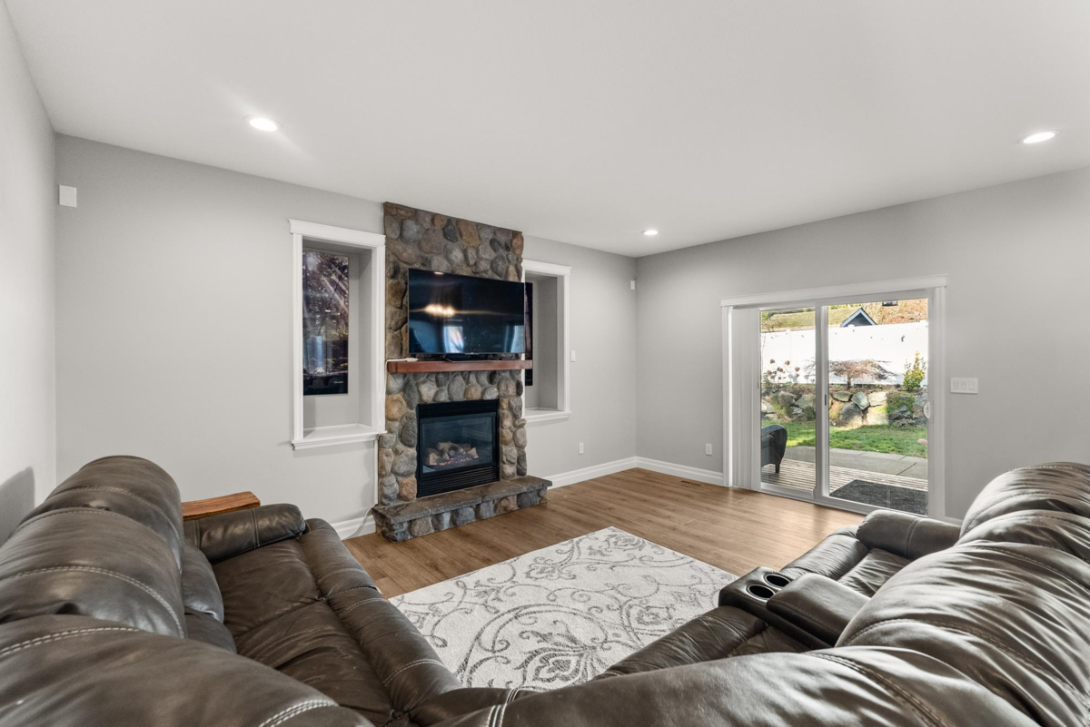 Welcome to one of Promontory’s most sought-after locations, on one of the nicest streets on the mountain. This home offers a spacious open-concept floor plan with 4 generous bedrooms plus a den. Inviting curb appeal leads into a large great room, ideal for entertaining. The kitchen features ample counter space, sit-up area, pantry, updated appliances, with laundry on the main floor. Recent upgrades: NEW HEAT PUMP, NEW WINDOWS, NEW VINYL FENCING, NEW FLOORING and TRIM throughout, FRESH interior and exterior PAINT & beautifully RENOVATED BATHROOMS. Step outside to a private patio w/ built-in speakers—perfect for enjoying summer evenings or from your front door take a 15 minute trail walk to the Chilliwack River and go explore! CHECK OUT THE VIDEO TOUR! **OPEN HOUSE SUNDAY FEB 1st 2-4pm**