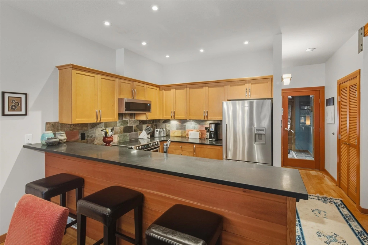 Fabulous 3-bedroom townhome located in Montebello: one of Whistler's most desired Village area developments, just a short walk to your favourite restaurants and shops! Bright open living area with vaulted ceilings, exposed beams, stone and wood accents, beautiful wood fireplace and tasteful decor provide all the character of a classic ski chalet, while modern conveniences that include stone counters, stainless steel appliances, heated flooring, a single car garage, and private hot tub provide comfort and utility. This unique property is ready to be used this Winter season, enjoy cross-country skiing, snowshoeing, or walks along Fitzsimmons Creek, all located just outside your door.