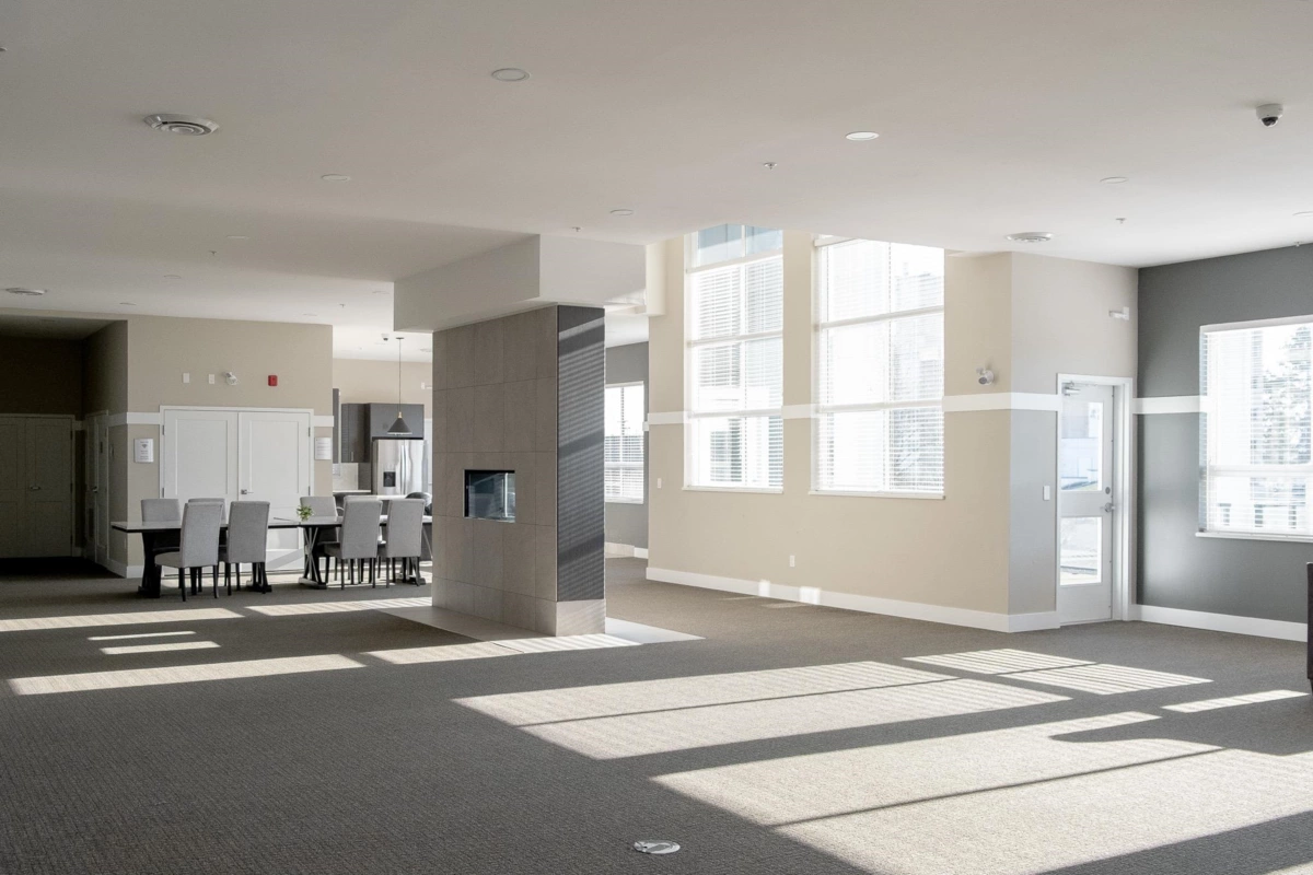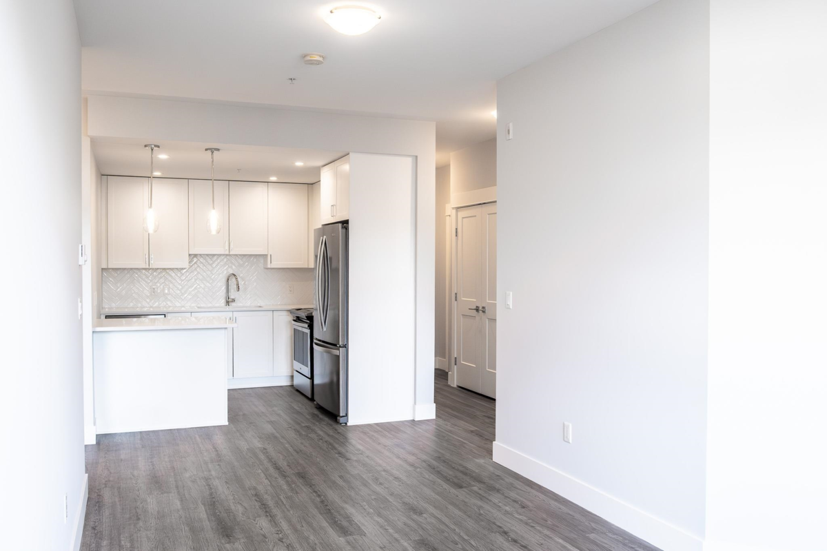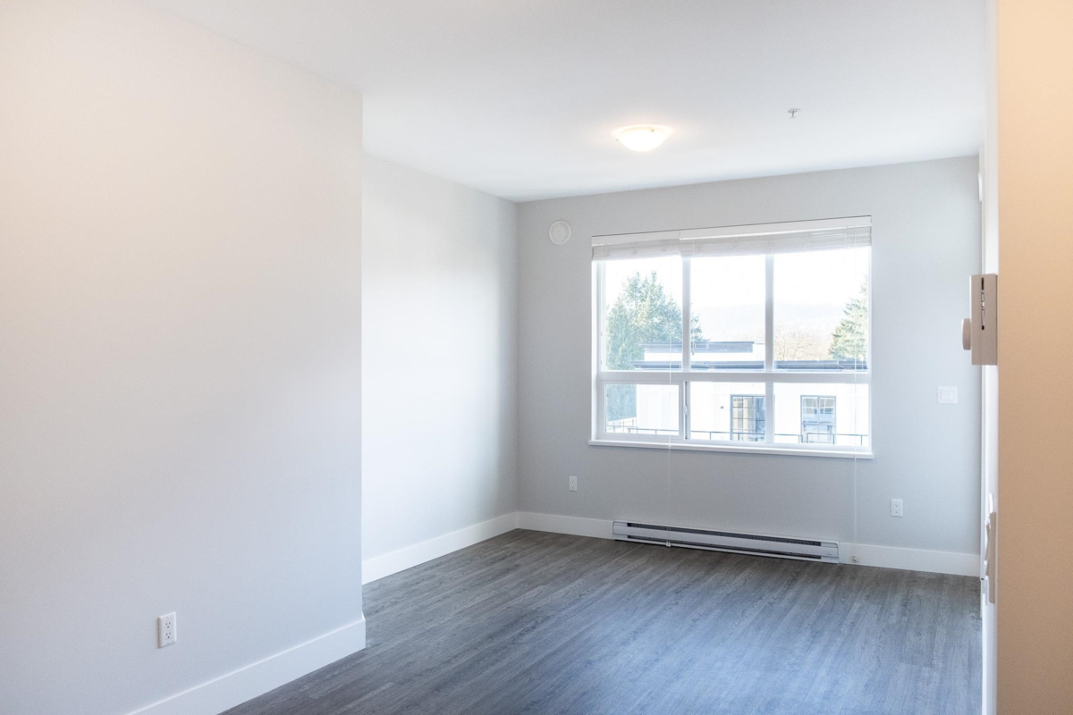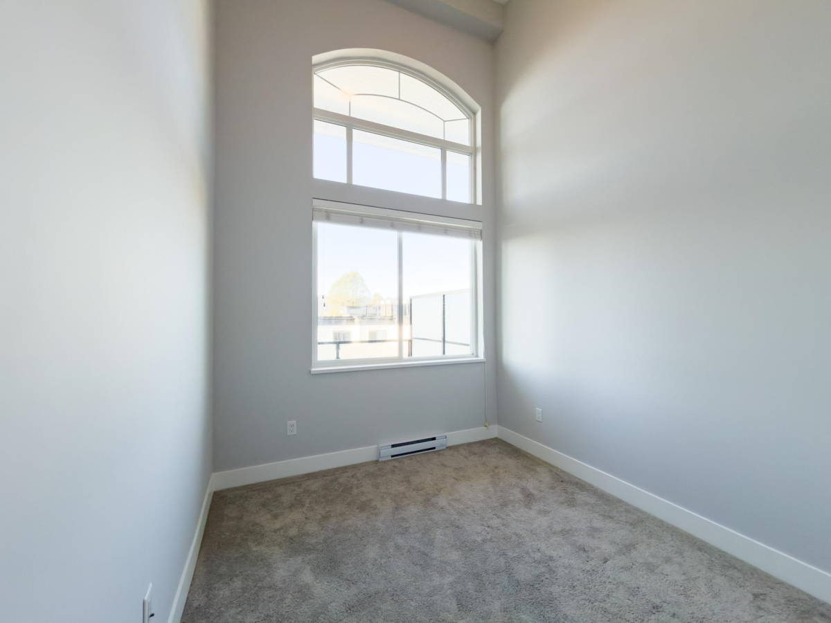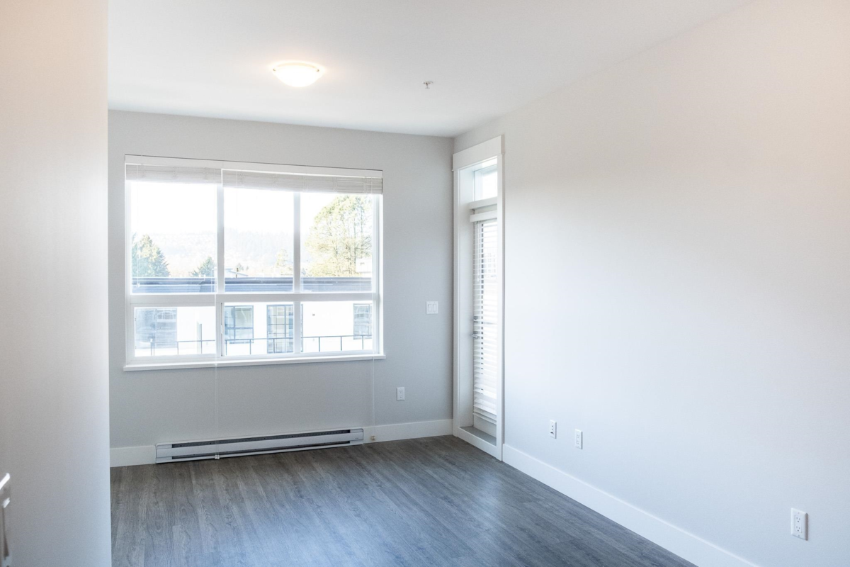 Welcome to Montrose Square - where urban convenience meets nature! This spacious 2-bedroom + den, 2-bathroom home offers 940 sq ft of thoughtfully designed living space with soaring 9 to 15 ft vaulted ceilings. Enjoy luxury vinyl plank flooring in the main areas, plush bedroom carpeting, and in-floor heating in both bathrooms. The modern kitchen features black stainless steel appliances, quartz countertops, undermount sinks, soft-close cabinetry, and matte black fixtures. Step onto your large balcony or explore nearby trails, parks, shops, schools, and the PoCo Community Centre with pool and fitness facilities. Only a 2-minute walk to the West Coast Express. Includes one underground parking stall, with a second stall available for $100/month.