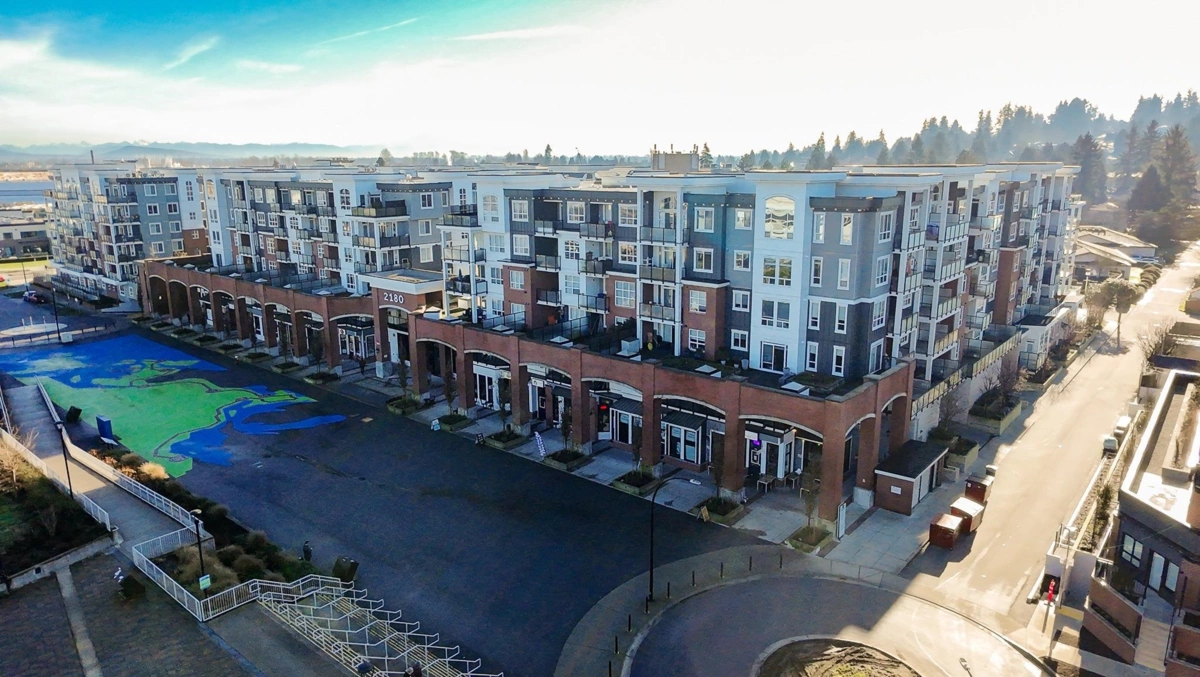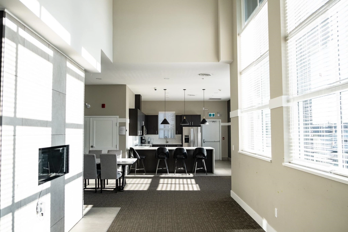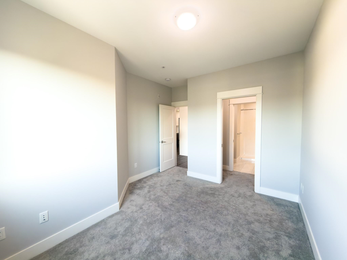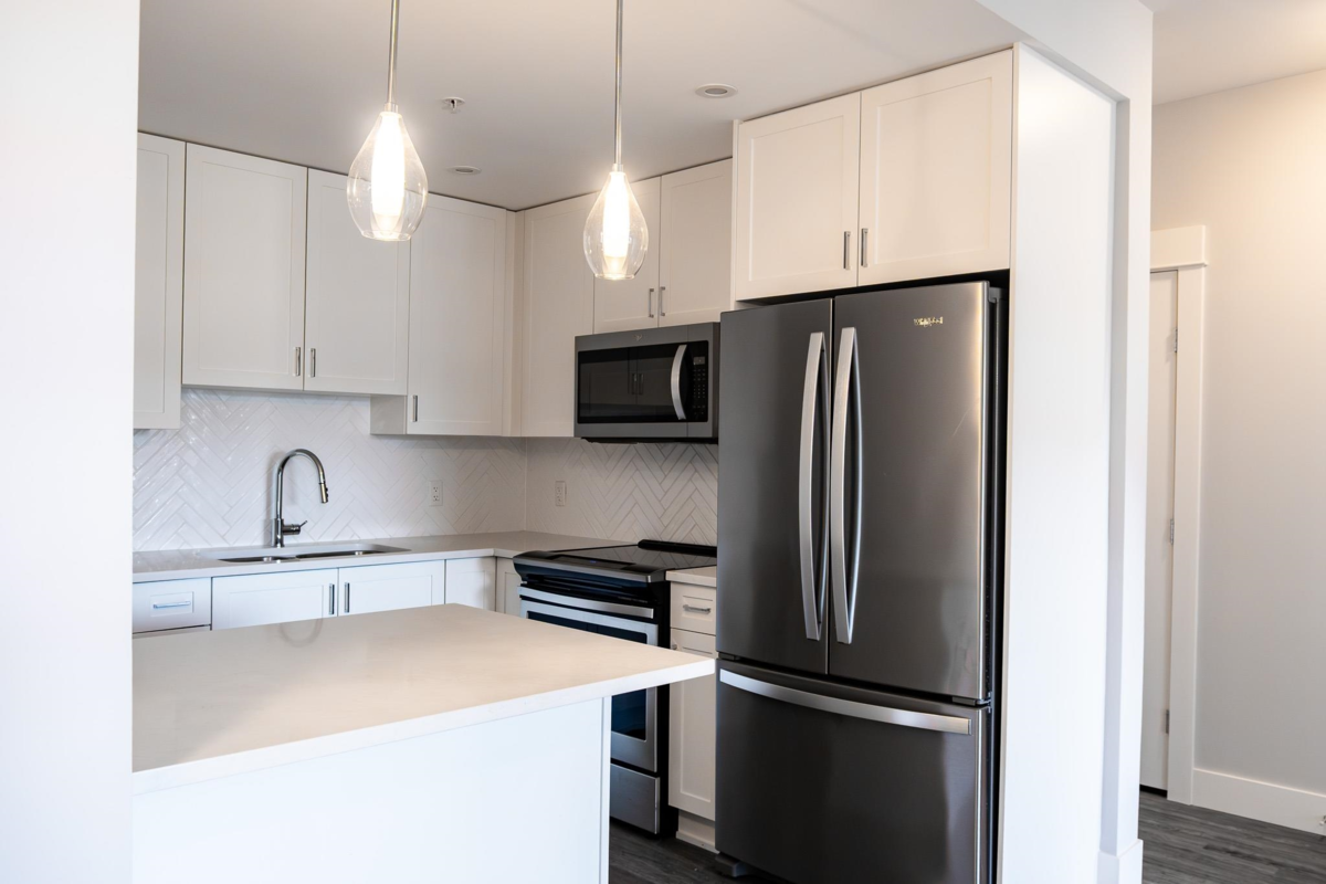 Welcome to Montrose Square - where urban convenience meets nature! This spacious 2-bedroom + den, 2-bathroom home offers 940 sq ft of thoughtfully designed living space with soaring 9 to 15 ft vaulted ceilings. Enjoy luxury vinyl plank flooring in the main areas, plush bedroom carpeting, and in-floor heating in both bathrooms. The modern kitchen features black stainless steel appliances, quartz countertops, undermount sinks, soft-close cabinetry, and matte black fixtures. Step onto your large balcony or explore nearby trails, parks, shops, schools, and the PoCo Community Centre with pool and fitness facilities. Only a 2-minute walk to the West Coast Express. Includes one underground parking stall, with a second stall available for $100/month.