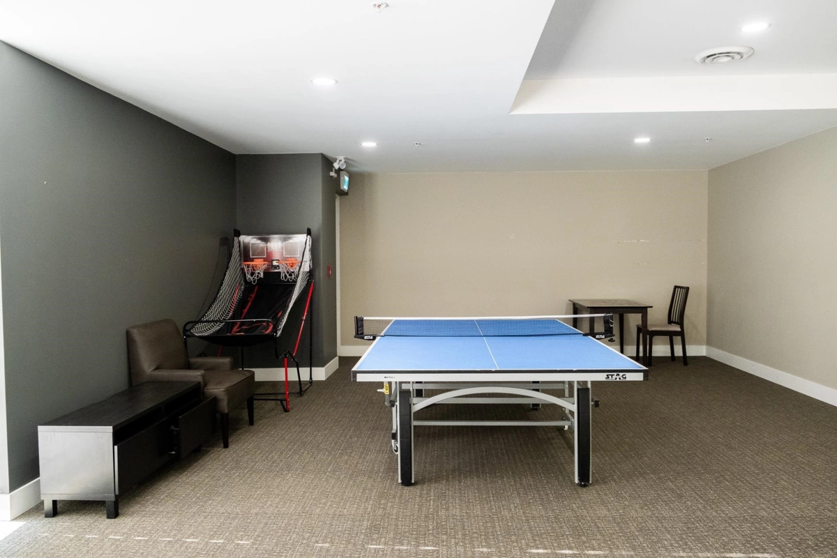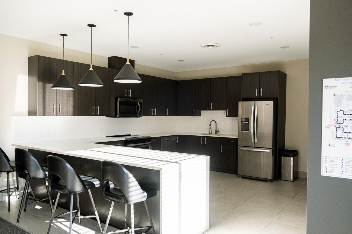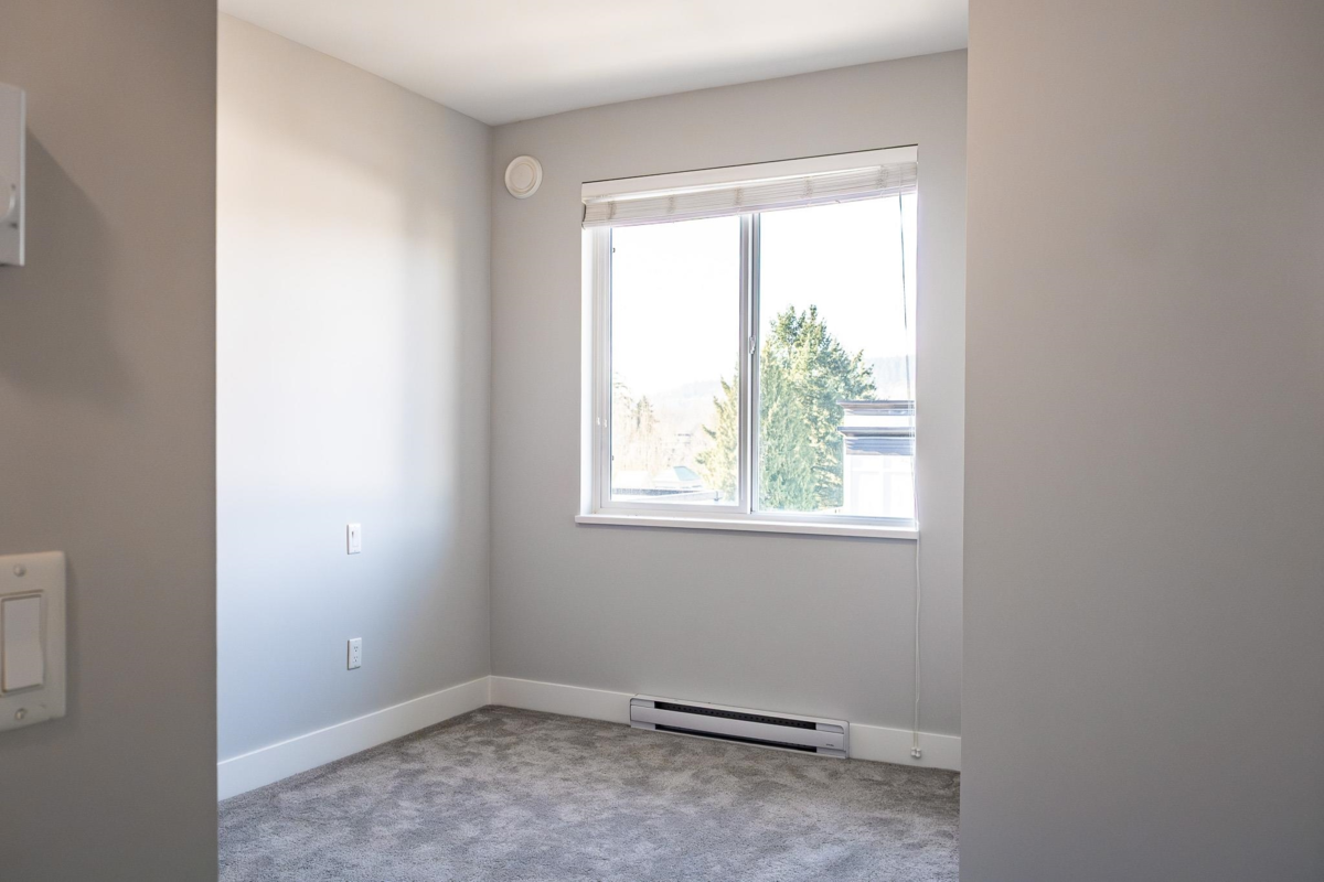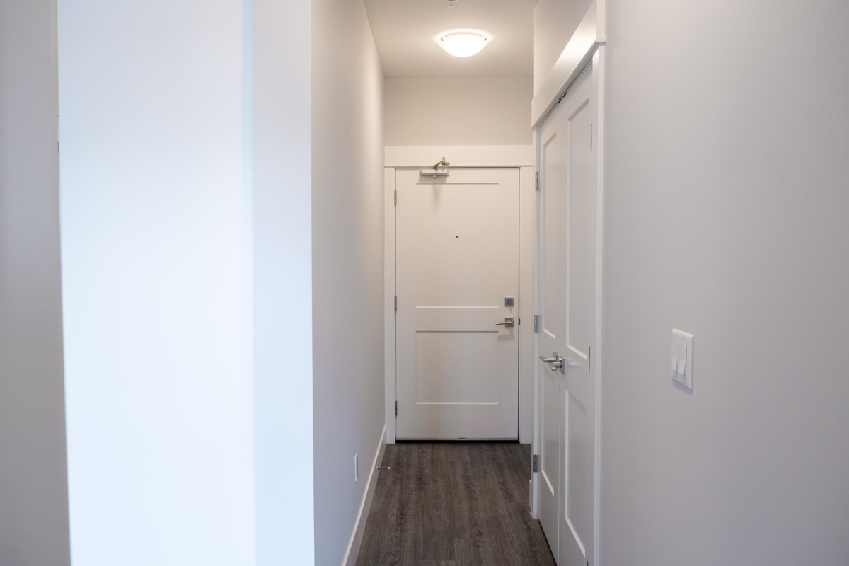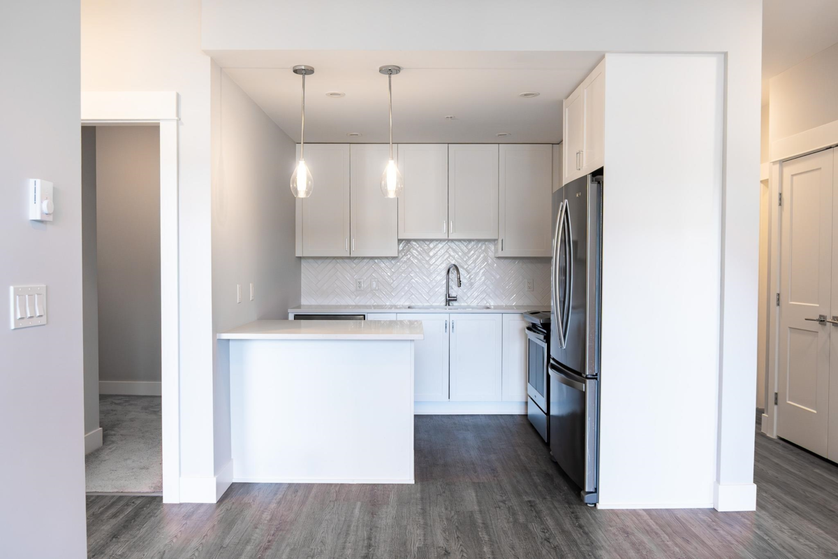Welcome to Montrose Square - where urban convenience meets nature! This spacious 2-bedroom + den, 2-bathroom home offers 940 sq ft of thoughtfully designed living space with soaring 9 to 15 ft vaulted ceilings. Enjoy luxury vinyl plank flooring in the main areas, plush bedroom carpeting, and in-floor heating in both bathrooms. The modern kitchen features black stainless steel appliances, quartz countertops, undermount sinks, soft-close cabinetry, and matte black fixtures. Step onto your large balcony or explore nearby trails, parks, shops, schools, and the PoCo Community Centre with pool and fitness facilities. Only a 2-minute walk to the West Coast Express. Includes one underground parking stall, with a second stall available for $100/month.