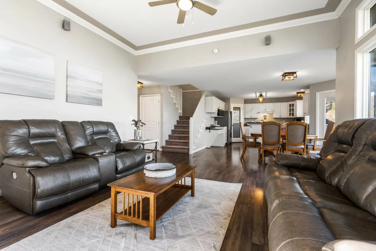 Spacious, thoughtfully designed, and set up perfectly for multigenerational living, this property features a full walk-out basement suite that offers flexibility for family or added income potential. The layout allows everyone to have their own space while still feeling connected under one roof. Located within walking distance to the elementary school without directly onto it or being exposed to heavy traffic — you get the convenience families want with privacy. Inside, you’ll find generous living spaces and a functional floor plan built for everyday life. Outside, the home offers ample parking, including an impressive size garage — ideal for vehicles, toys, or workshop space. To top it off, enjoy beautiful valley and mountain views from your covered patio. A rare combination of space!