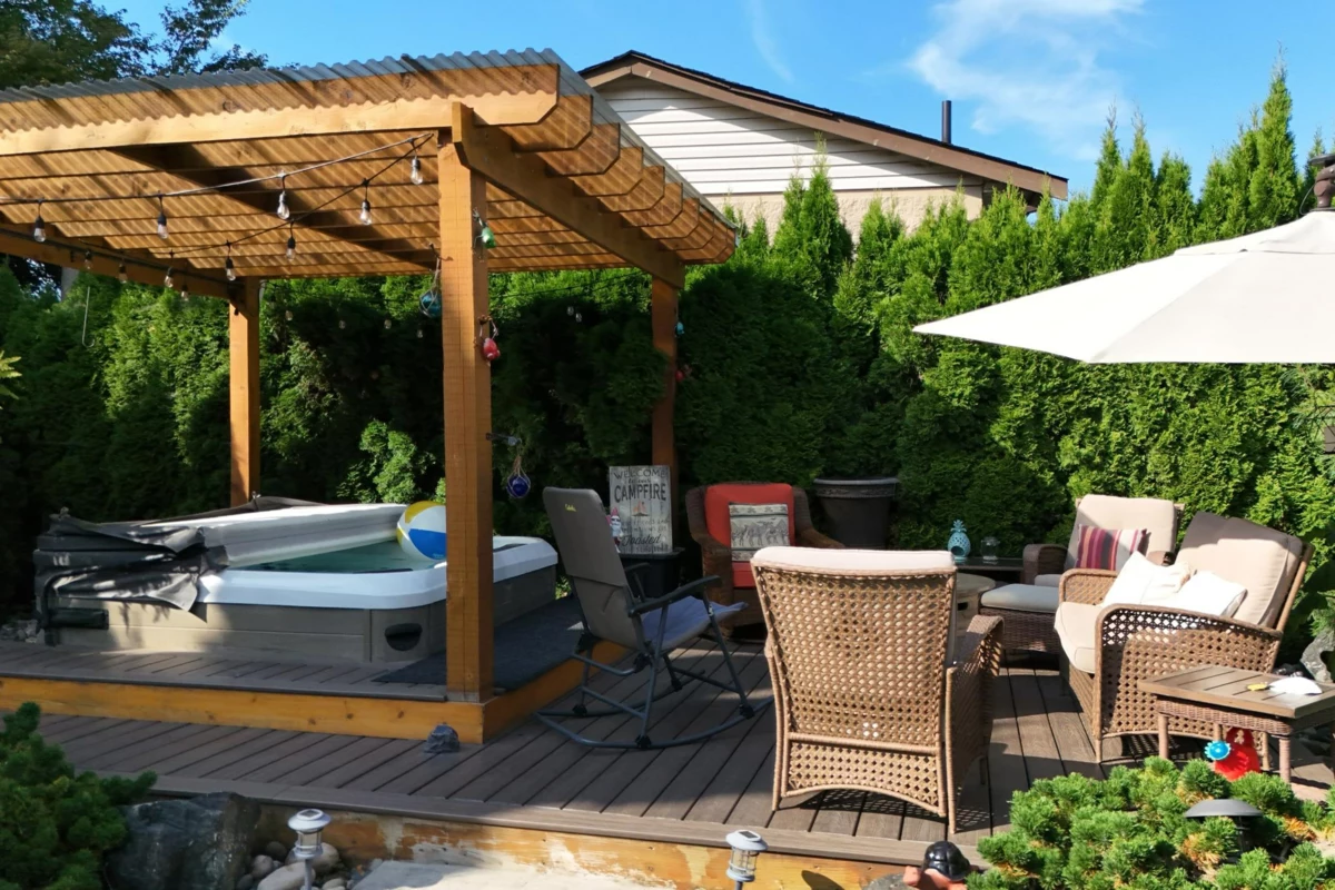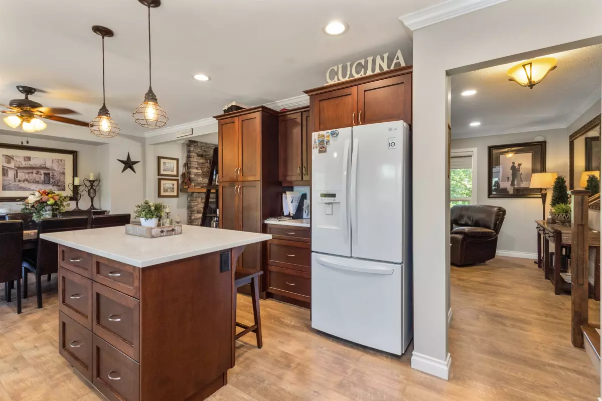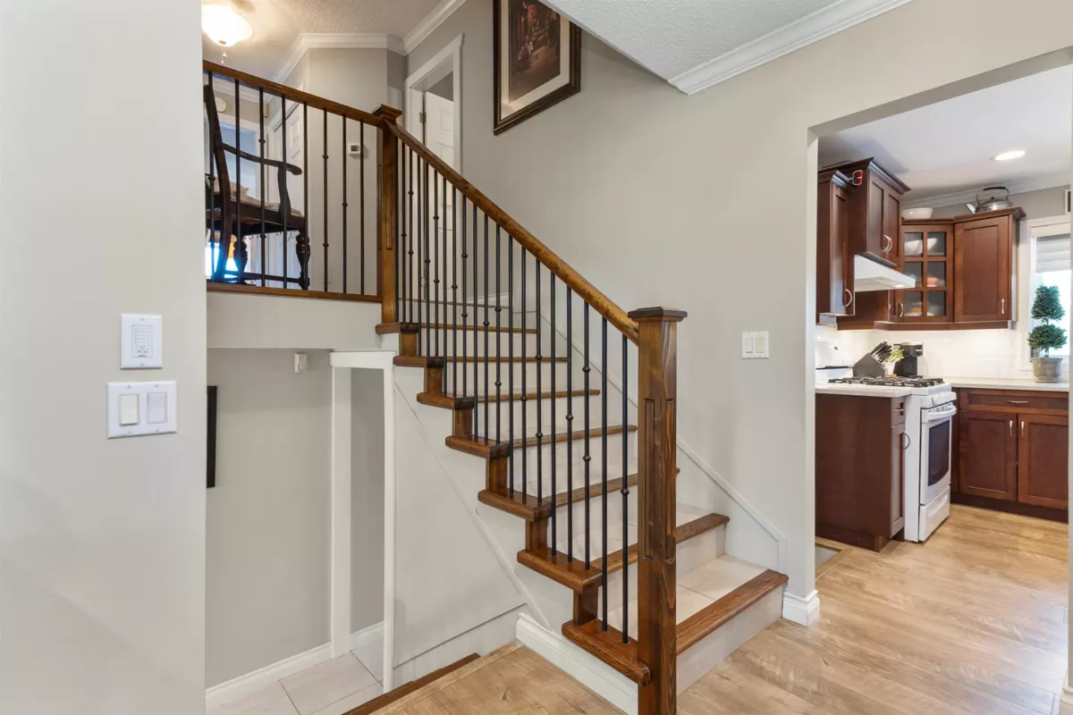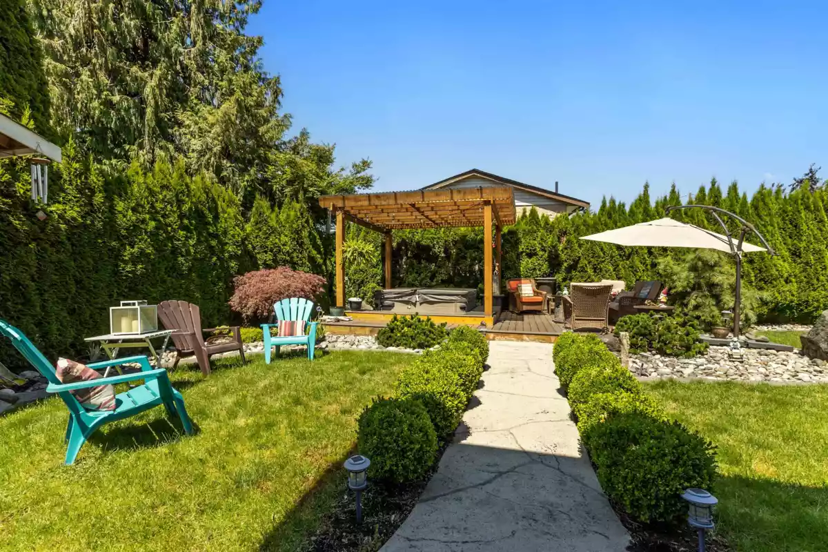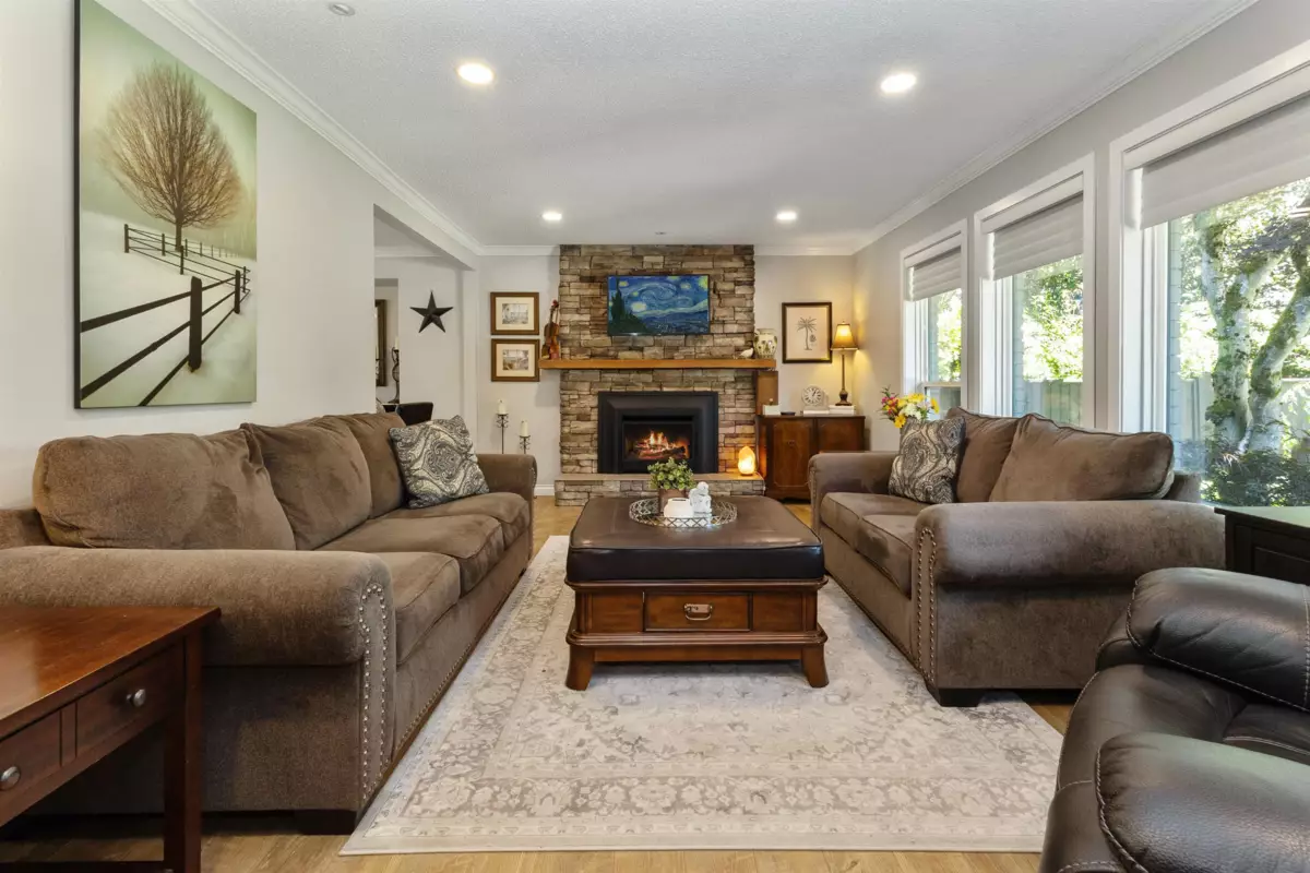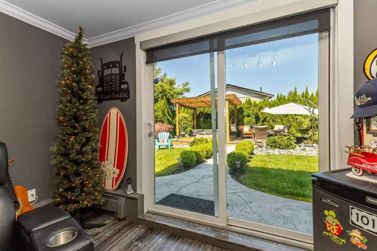 HOME FOR THE HOLIDAYS, fully updated, valuable property with views of Hope River. Fantastic living spaces on all 3 levels incl. formal level entry and family room with easy walkout to the amazing yard space. Main floor with living rm with a new natural gas fireplace and south-facing windows w/electric blinds. Modern kitchen with shaker cabinets, quartz counters, inlay sink, gas range and island open to the dining rm w/ French doors to the sundeck. Upper level with 3 good-sized bedrms, primary w/ ensuite, deluxe 5-pce main bathrm. Quality updates throughout. Excellent in the city location, 80 ft frontage, 8,712 sq ft landscaped property, in-ground sprinklers, large newer concrete driveway, RV parking, private backyard with patio, sundeck and gazebo with hot tub. Location and style!
