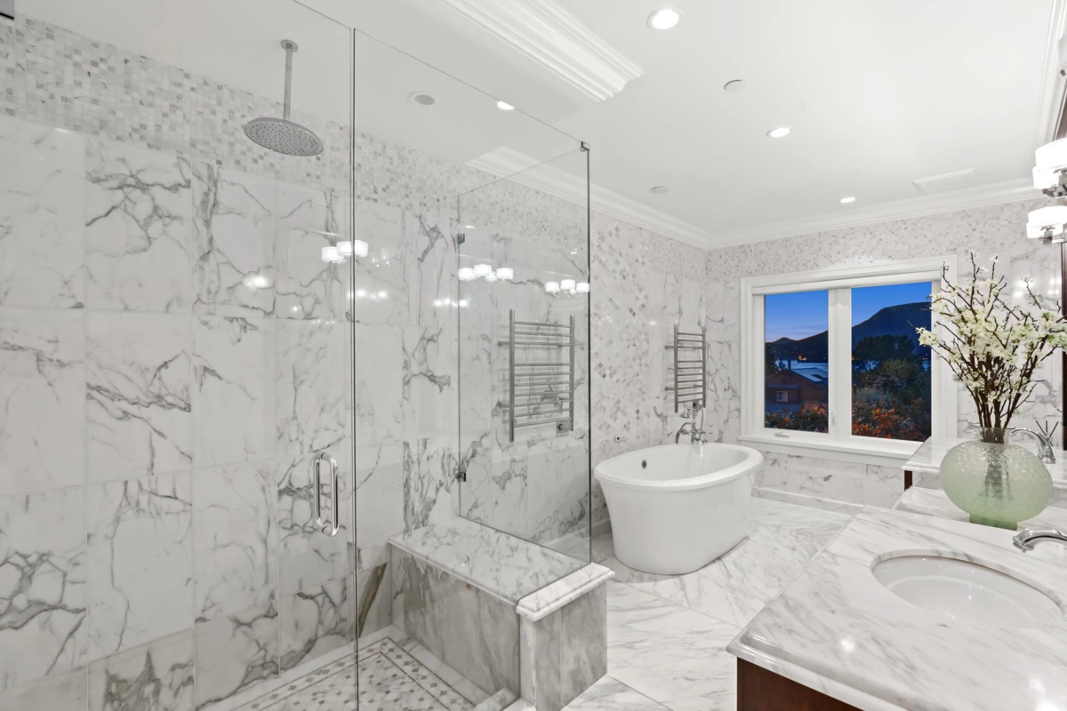 Located in Point Grey, step away to Locarno Beach, sitting on a 9000(60 x 150) sqft lot. This spectacular home offers 5283 sqft of spacious floor plan with attention to detail throughout. Total of 5 bedrooms and 6 full bath/ 2 half bath. Second floor has three ensuites bedrooms, north facing master bedroom with beautiful mountain, water and city view. Den on the main floor includes a full bath which can be turn into a bedroom. Functional layout, H/W flooring, wok kitchen comes with high end appliances, HRV, A/C. Basement with home theatre, huge recreation room & 2 guest bedrooms. 3 car garage. School catchment: Queen Mary Elementary & Lord Byng Secondary.