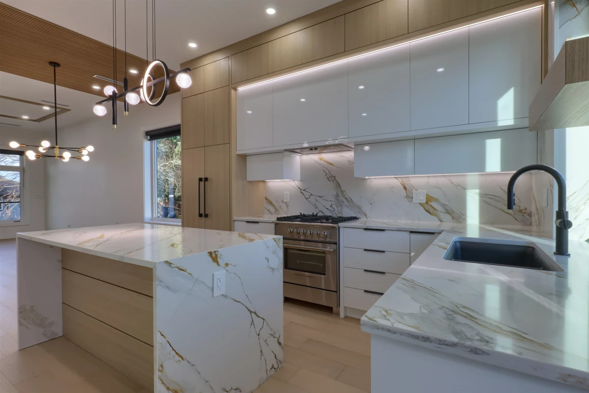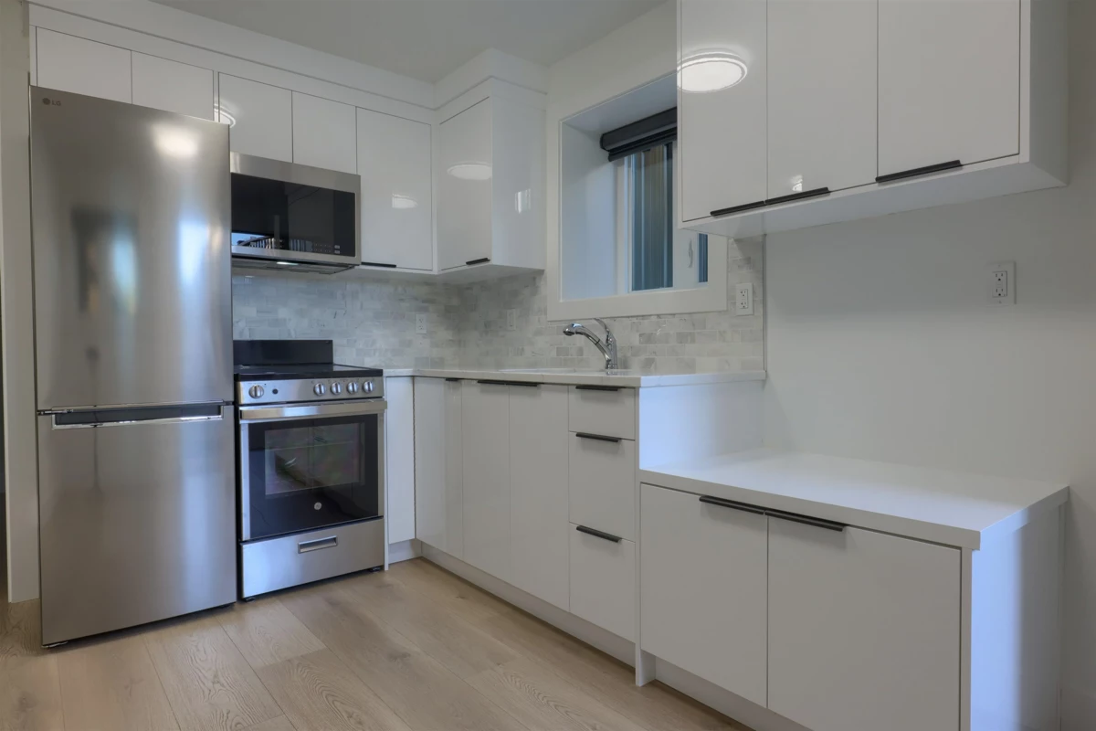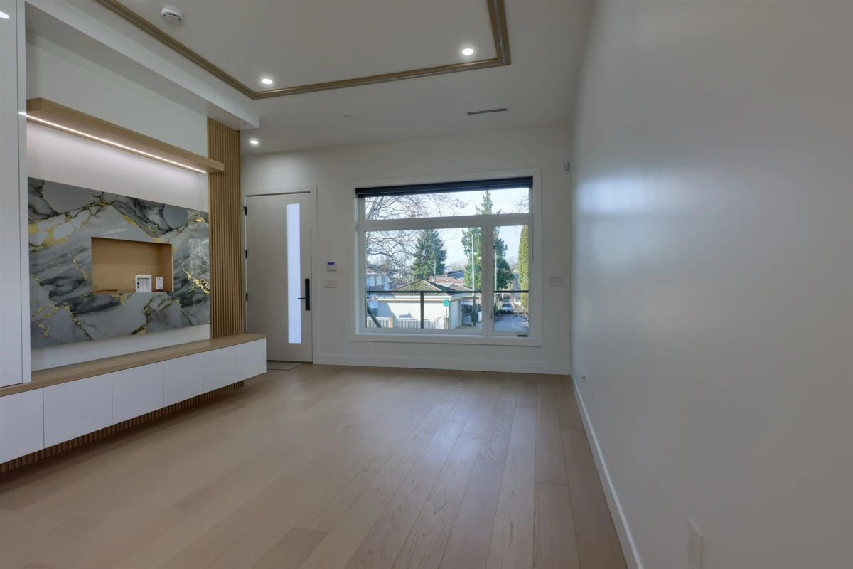 This brand-new, custom-built half duplex is a MUST SEE. This luxurious home combines high-quality finishes with prime convenience, nestled on a quiet, tree-lined street just 250 meters from the 29th Avenue Skytrain station. Upstairs, you'll find 3 bedrooms, 3 bathrooms.The interior presents an open floor plan with high ceilings, hutch/bar area, quartz countertops, radiant in-floor heating, engineered hardwood, custom cabinetry, and triple-glazed windows. The kitchen features floor-to-ceiling marble slabs, high-end Fisher & Paykel appliances, and a microwave/air fryer combo, while bathrooms are elegantly tiled from floor to ceiling. And enjoy a great entertaining space, with the outdoor kitchen featuring Napoleon appliances. The basement features a 2-bedroom mortgage helper.
