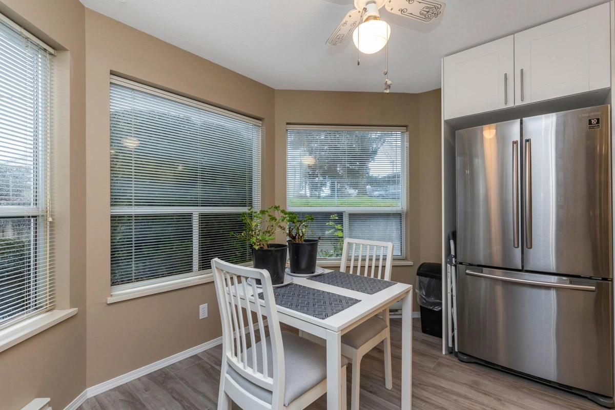Spacious 2-level corner townhome in a quiet 55+ community, offering 2,404 sq ft with 3 bedrooms and 3 bathrooms. Ground-level entry provides easier mobility for seniors. Recent updates include kitchen cabinets, appliances, flooring, and fresh paint. Cozy gas fireplace, bright open living spaces, ample storage, and move-in ready. Enjoy private outdoor space, easy access to parks, walking trails, shopping, dining, and all amenities. One small pet allowed.