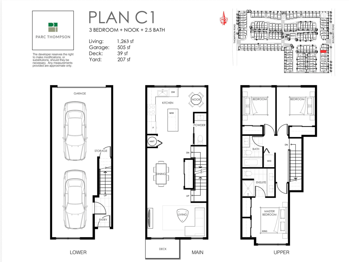 Discover the Early Spring move-in Parc Thompson Townhomes with NEW PRICE in Hamilton, Richmond - a hidden gem with quick access to Richmond, Surrey, New Westminster, and Burnaby, all with just a 5% deposit in the final phase 3. Experience exceptional craftsmanship featuring a 100% Hardie and brick exterior, soaring 9' ceilings, and bright oversized windows. Inside, enjoy elegant quartz countertops, upgraded Fisher & Paykel appliances, and modern GROHE fixtures. This phase introduces an ENERGY-EFFICIENT HEAT PUMP with AC for year-round comfort, along with EV charger (240V).Unwind on your spacious fenced patio and balcony, just minutes from Walmart, Costco and the Hamilton community, with easy access to the Lower Mainland via the 410 bus and 22nd SkyTrain.