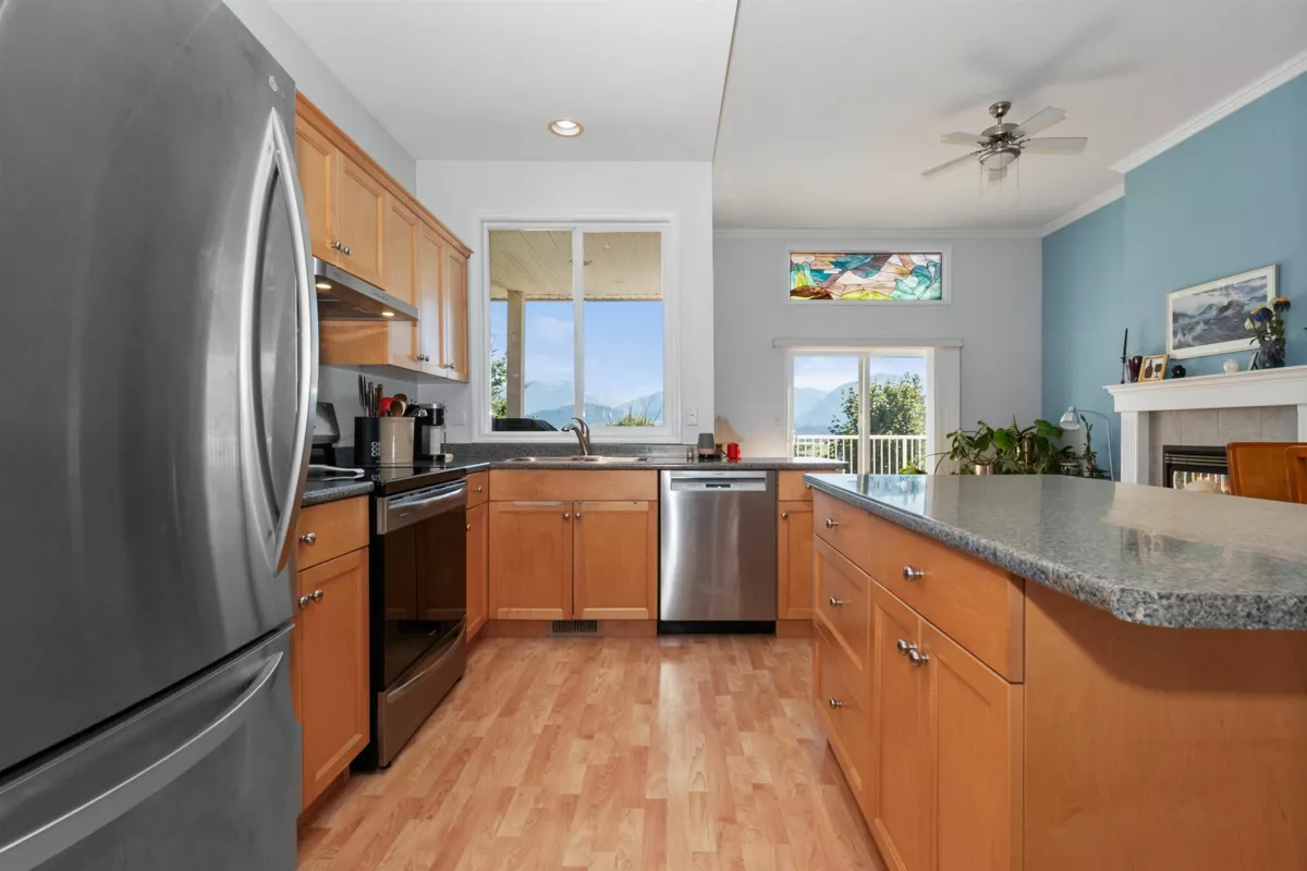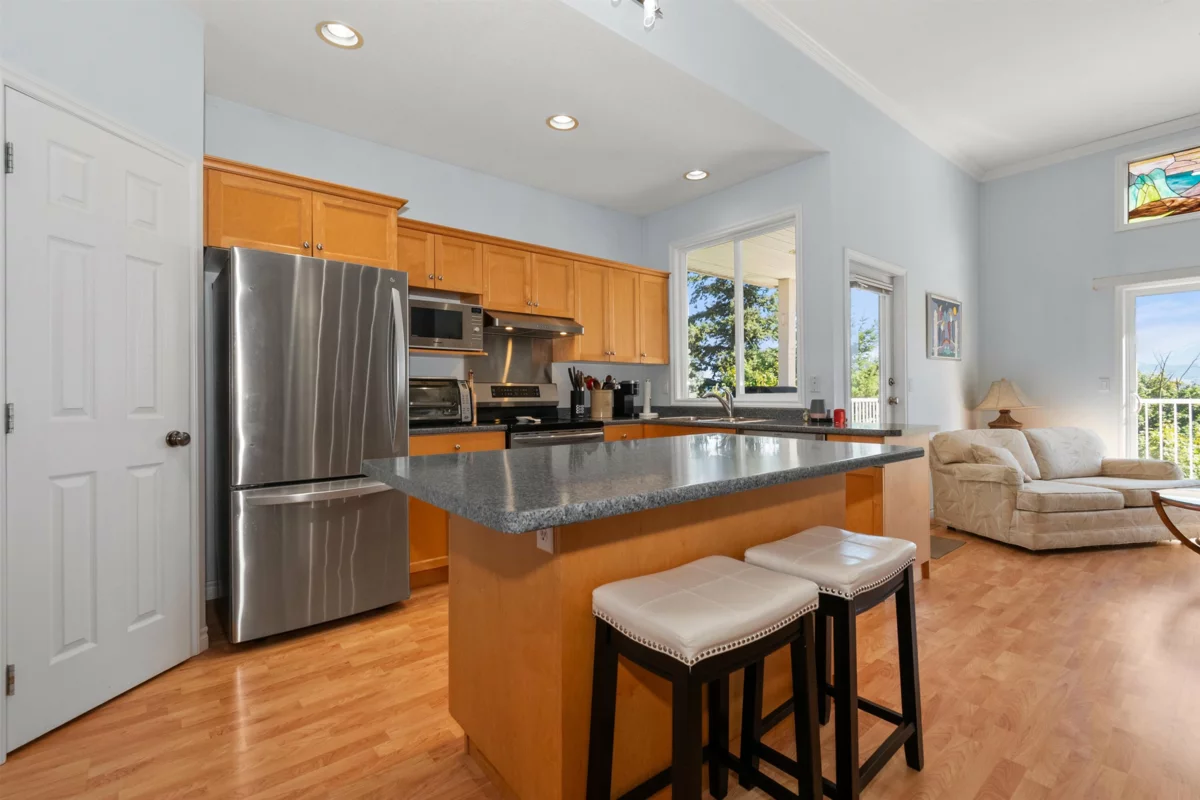 Stunning valley views, end-unit privacy, and treed greenspace behind make this 3-bedroom rancher with walk-out basement truly special. Enjoy what this premium gated community has to offer. The main level of this home is filled with natural light from large windows and features a well-designed kitchen that flows into the eating area & south-facing living room with 11’ ceilings. No stairs to access your primary bedroom and 3-piece ensuite, plus there is a second bedroom or den on the main floor for guests. Downstairs offers spacious rec room, third bedroom, full bath, and finished bunker under the garage perfect for hobbies or workshop space. Two private decks, double garage, no neighbors behind & RV parking in a peaceful, sought-after setting. You need to make a decision to view this home!
