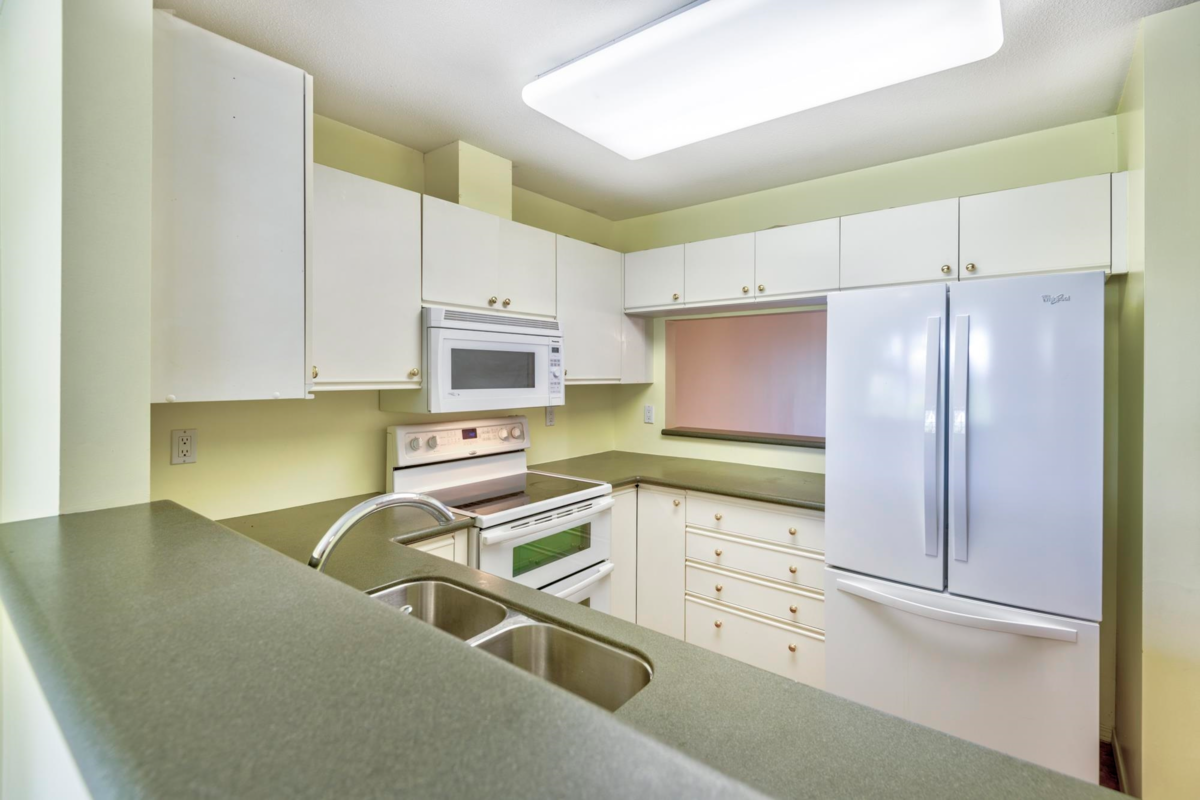 Rancher style townhouse with no one above AND NO STAIRS. 2 oversized bedrooms, 2 completely renovated bathrooms, flex room at the front could be a den or eating area. Large south facing patio with a natural gas bbq hook-up, perfect for those summer bbqs and backs onto Kennedy Park. Single attached garage AND an open parking spot right at your doorstep. Top end appliances, newer furnace & hot water tank. Custom 2" faux blinds throughout, screens on both doors. Under 5min walk to Kirkbride Elementary (K-7) and 12min walk to LA Matheson Secondary (8-12). Walk to shops, restaurants and a 2 min walk to Scott Rd. Rapid Bus. Plenty of Visitor parking and Club House with Mailboxes right across the way. 2 pets allowed. Super quiet location. PRICED TO SELL! Over $314,000 in contingency for 58 units