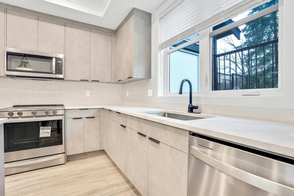 The best rowhome in town! This brand new corner home has two primary beds each with an ensuite, two additional beds, a den and two more baths. The main floor is an open concept with a spacious foyer, large windows, high ceilings, a modern living room with an elegant fireplace, fabulous powder bathroom for guests, entertainer's kitchen with s/s appliances and a garburator for added convenience. A cute deck with large sliding doors awaits you for you to have your morning coffee. Upstairs a large primary bedroom is attached a spa-like ensuite. Full size laundry, two additional bedrooms, and a spacious main bathroom are located upstairs with views of a serene park. The basement has a large flex space, a second primary bed and ensuite, perfect for a growing family! EV Ready and close to HWY1.