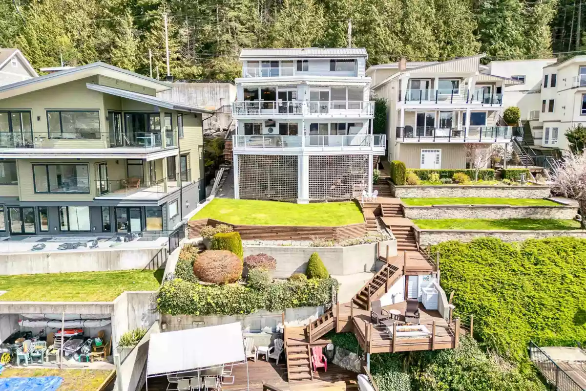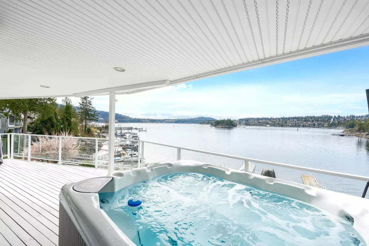 Waterfront Estate in seaside enclave of Belcarra. 3495 SF residence on 9489 SF lot offers luxury, privacy & coastal serenity. Southwest views, afternoon light & sunset brilliance from all levels. Oversized, private dock w/power, water & lighting. Covered boat lift for vessels up to 30ft, deep-water moorage for docking up to 40ft. Multiple outdoor tiers frame every sunset from cabana lounge & fire-pit deck to hot tub w/outdoor TV & huge main deck enhancing oceanfront living. Inside, luxury & comfort await. Solid cherry cabinetry, Silestone counters & Grohe fixtures elevate kitchen & bathrms. Radiant heated flrs, high efficiency forced air natural gas furnace & central AC for year-round comfort, indoor fireplaces add warmth & ambiance. A lifestyle defined by nature, elegance & tranquility.