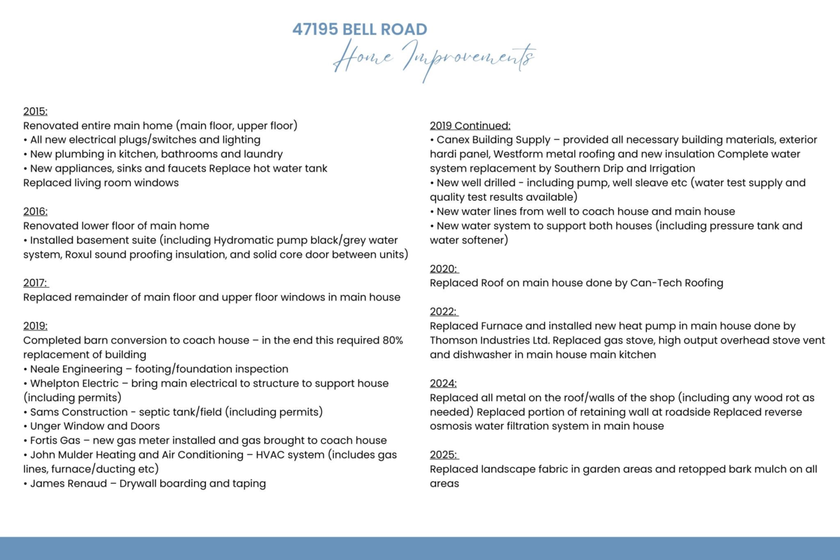 The PERFECT MULTI-GENERATIONAL ESTATE! Sitting on a MANICURED 5 acre lot w/ 290' of waterfront, a MASSIVE 2100 sq ft SHOP, self contained 2-3 bdrm secondary residence & a RENOVATED 5 bdrm FAMILY HOME w/ inlaw bsmt suite! This property is the definition of tranquil living, featuring a 760' driveway, privacy hedges, mature trees, greenhouse, gardens & your own private beach to take the kayak out. Step inside to a 3906 sq.ft 2015 remodelled home w/ soaring vaulted ceilings to capture the VIEWS, newer windows, roof, furnace, heat pump & a beautiful 1 or 2 bed SUITE w/ sep laundry. Charming 2 storey 2122 sq.ft open concept 2 bed + den secondary home w/ private fenced yard completely redone in 2019. The quonset shop feat dual 12' and 10' doors & wood stove! Feature list & floorplans available!