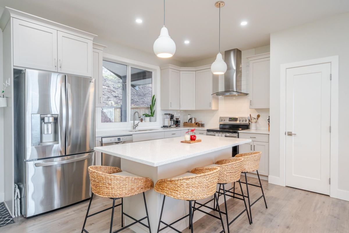 Enjoy stunning views and ultimate privacy in this beautiful home in a highly desirable part of Promontory. With no neighbours behind and the Mt. Thom walking trail just up the street, nature is at your doorstep. The spacious floor plan features a great room with a cozy fireplace and a chef’s kitchen complete with quartz countertops, a pantry, and stainless steel appliances. Relax on the covered back deck or enjoy the view from the sundeck out front. The large master suite boasts a 5-piece ensuite and a walk-in closet, plus two additional bedrooms on the main. The big, finished basement offers endless options for a growing family. This home is completely landscaped and move-in ready. Experience the best of Promontory living!
