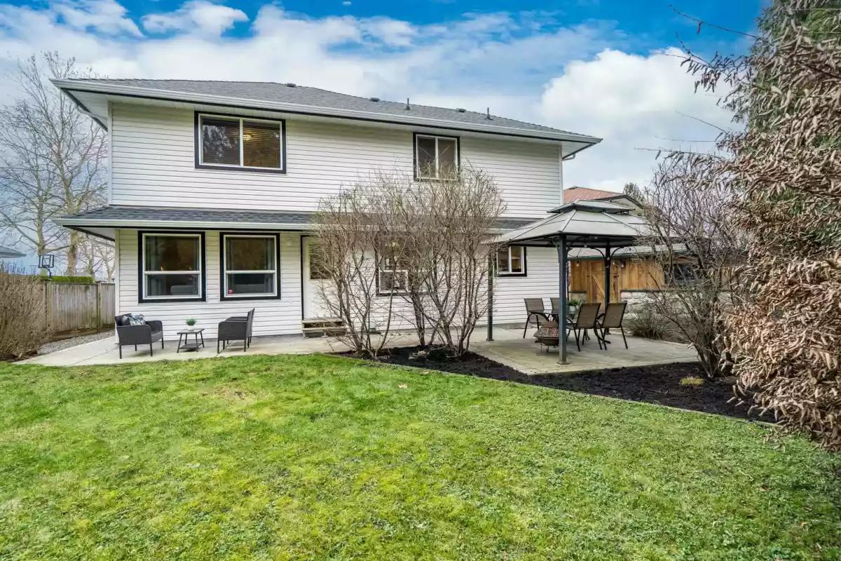 Attractive 2-storey home on a quiet, tree-lined street in upper Murrayville. Main floor features a welcoming living room w/ hardwood floors, gas fireplace, vaulted ceilings, & an adjacent dining area w/ crown molding. Kitchen w/ white cabinets, stainless appliances, tile backsplash, pot lights, & open eating area. Family room w/ gas fireplace & access to fenced rear yard w/ stamped concrete patios, gazebo, & large storage shed/shop w/ home office/flex space possibilities. Main floor bedroom/den, powder room, & laundry. Upstairs offers a generously sized primary bedroom w/ 5 pc ensuite, 3 additional bedrooms, & a full 4-pc bathroom. Central air-conditioning & crawl space storage. Great family neighbourhood close to parks, dog park, cafes, shops, schools, hospital, & WC Blair Rec. Centre.