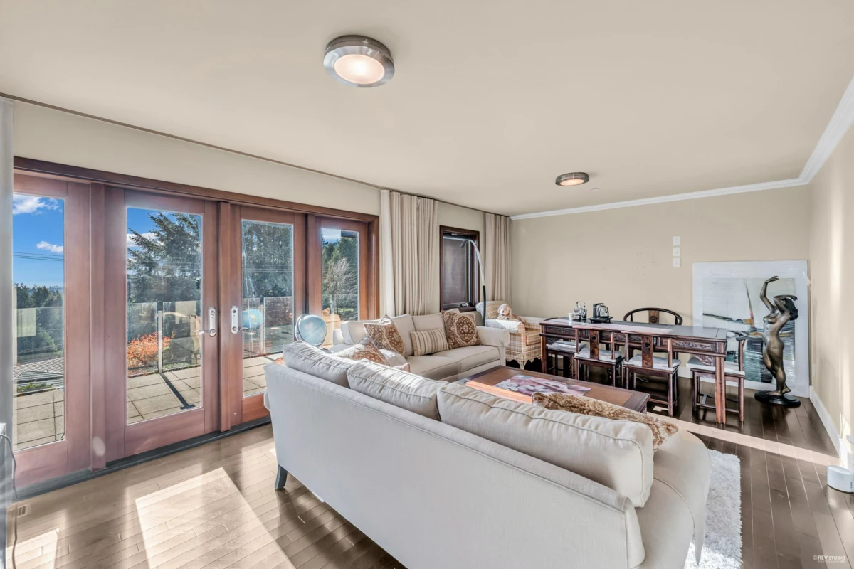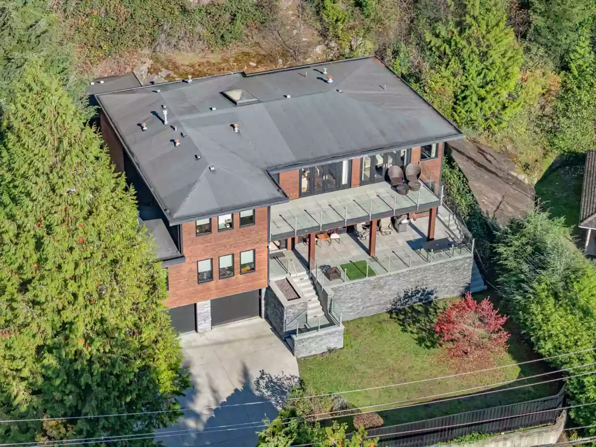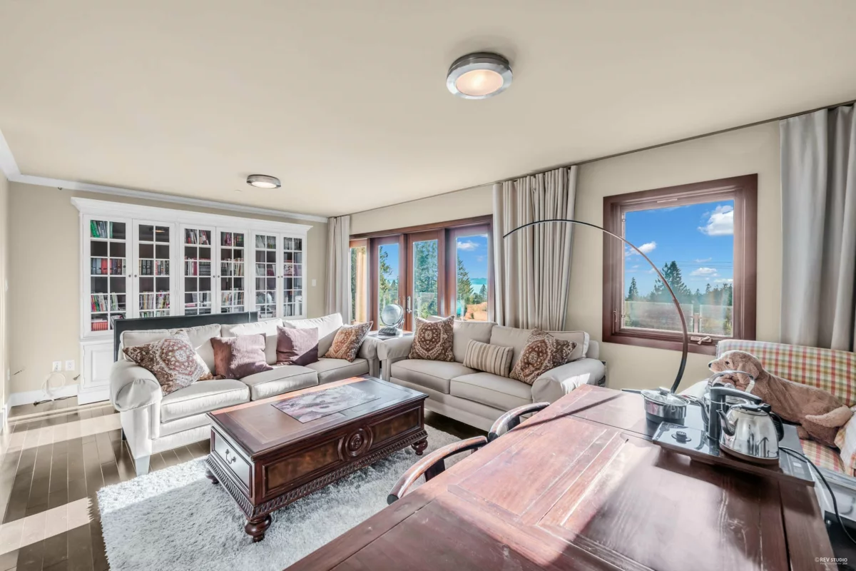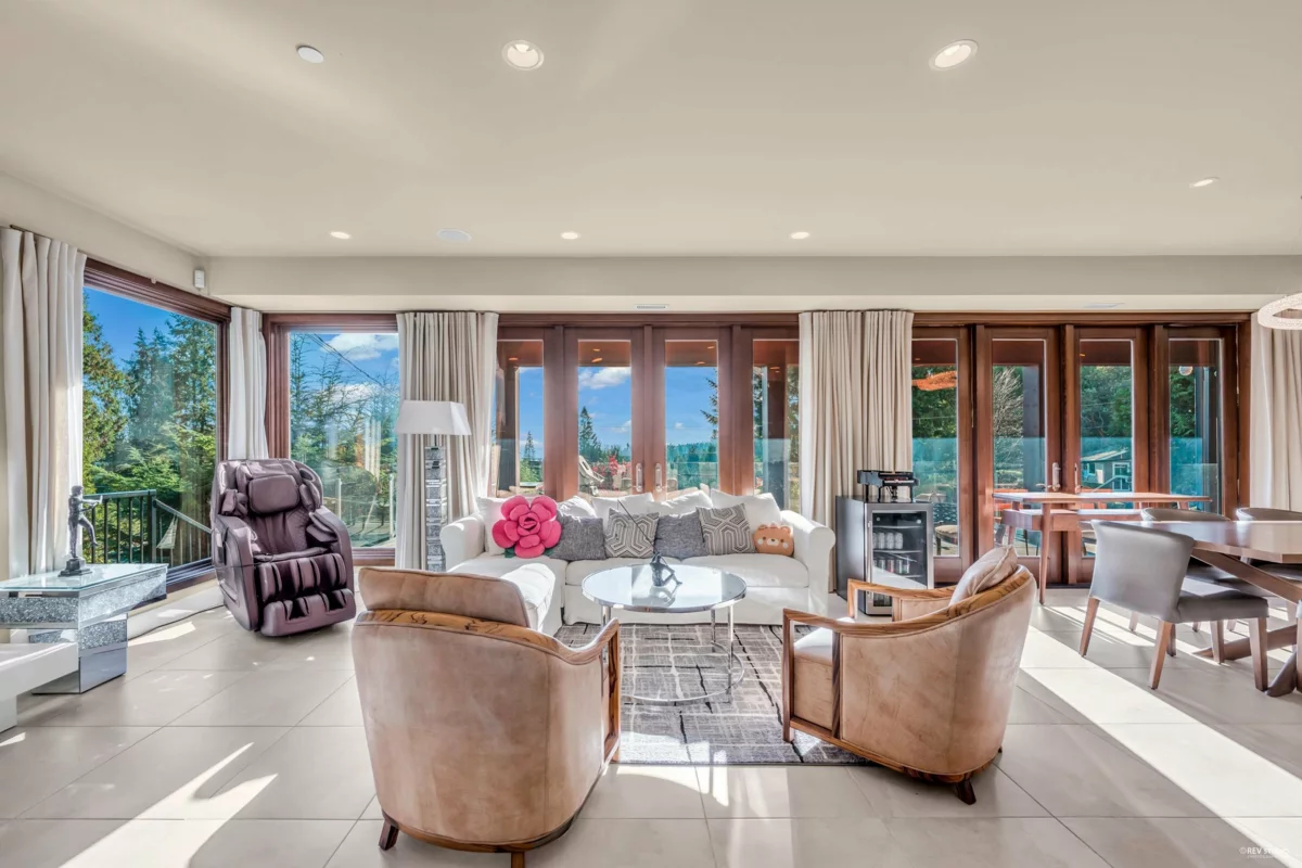 Fully rebuilt in 2008, this remarkable home sits on a generous lot exceeding 16,000 sqft & offers over 4000 sqft of living space, along with an attached 2-car garage. The layout is spacious and open, allowing plenty of natural light and showcasing incredible views. Crafted to an exceptional standard, each floor features expansive, sun-soaked decks perfect for gatherings. The main floor includes Living room, Kitchen, Dinning room and 1 bedroom, while the upper floor houses a family room and 3 more bedrooms. Total 4 en-suite bdrms. The master suite opens to a private backyard, creating a serene retreat. Additional spaces include a large office, a wok kitchen, and a detached GYM cottage. Located close to Caulfeild Elementary, Rockridge Secondary, & Caulfeild Village Shopping Centre.