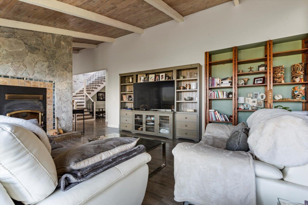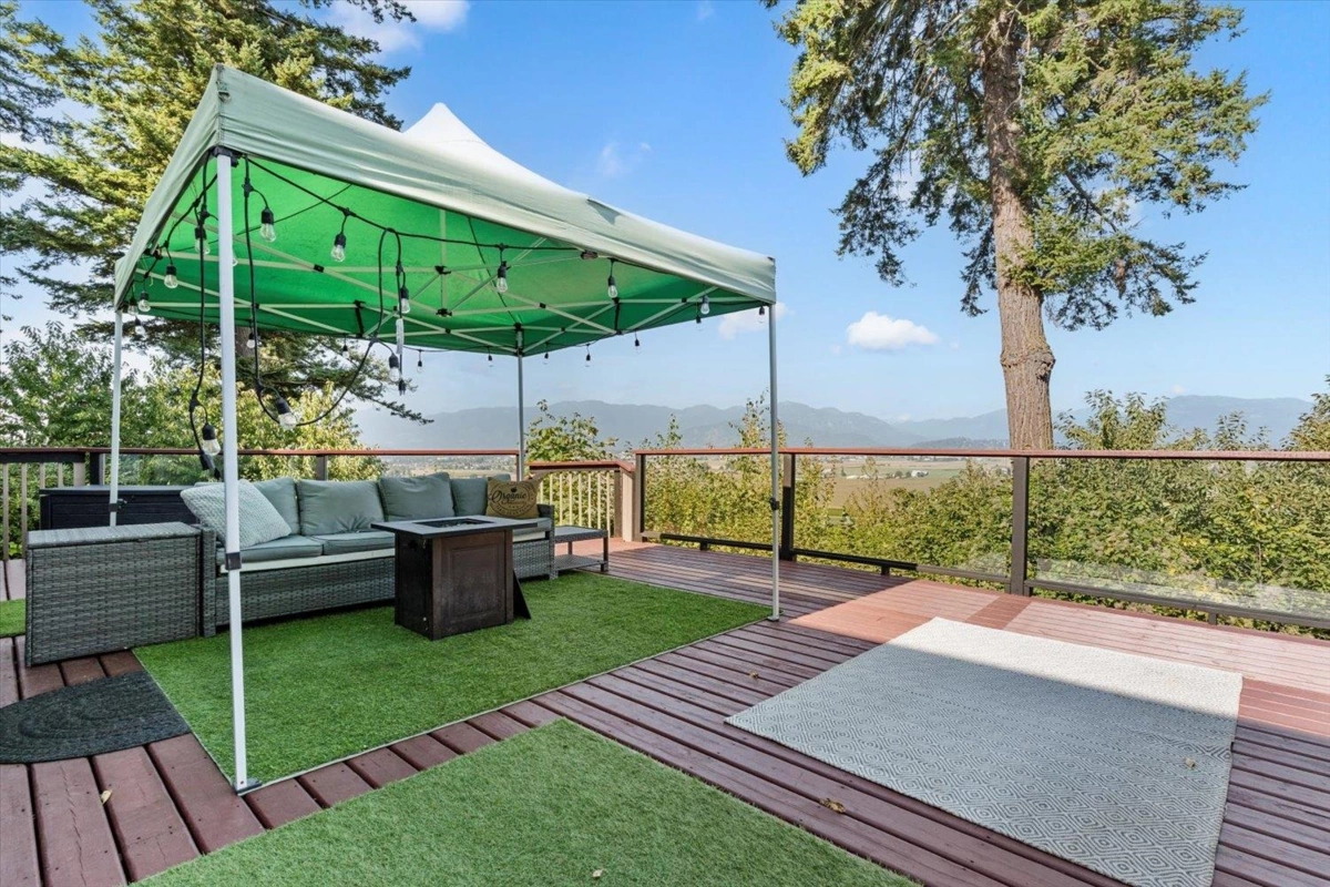Set on over 3 acres in Ryder Lake, this 6-bed home offers a rare blend of privacy, space & sweeping views over Chilliwack & the Valley. The main floor welcomes you with vaulted ceilings, exposed beams, a slate fireplace & large windows that frame the ever-changing scenery. The kitchen is both stylish & functional, featuring a glass backsplash, oversized island & easy access to the expansive patio—ideal for gatherings or quiet evenings taking in the view. A main-floor bedroom and full bath provide added convenience. Upstairs, the primary bedroom is a true retreat with breathtaking views, complemented by another bedroom & full bath. The lower level offers a spacious rec room, three additional bedrooms, a full bath & generous storage. Peaceful, private living just 10 min to daily essentials