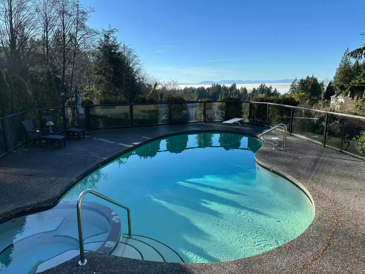 Nestled in Cypress Park Estates, this West Coast-style home offers ocean and island views. Situated on a 12,002 sq. ft. lot, this residence features Excellent Feng Shui layout, 4 bedrooms, 5 bathrooms, Hidden wok kitchen, and an open-concept layout filled with natural light from a striking skylight feature wall. Enjoy a beautiful outdoor pool, a wine room, and exceptional privacy. Brand-new hot water tank and Upgraded plumbing – replaced main grey water pipe. Just minutes from Caulfeild Village, Rockridge High School, and scenic trails. Experience the perfect blend of comfort, privacy, and natural beauty in this exceptional home. Open house on Sun 11am to 1pm,Jan 25th.