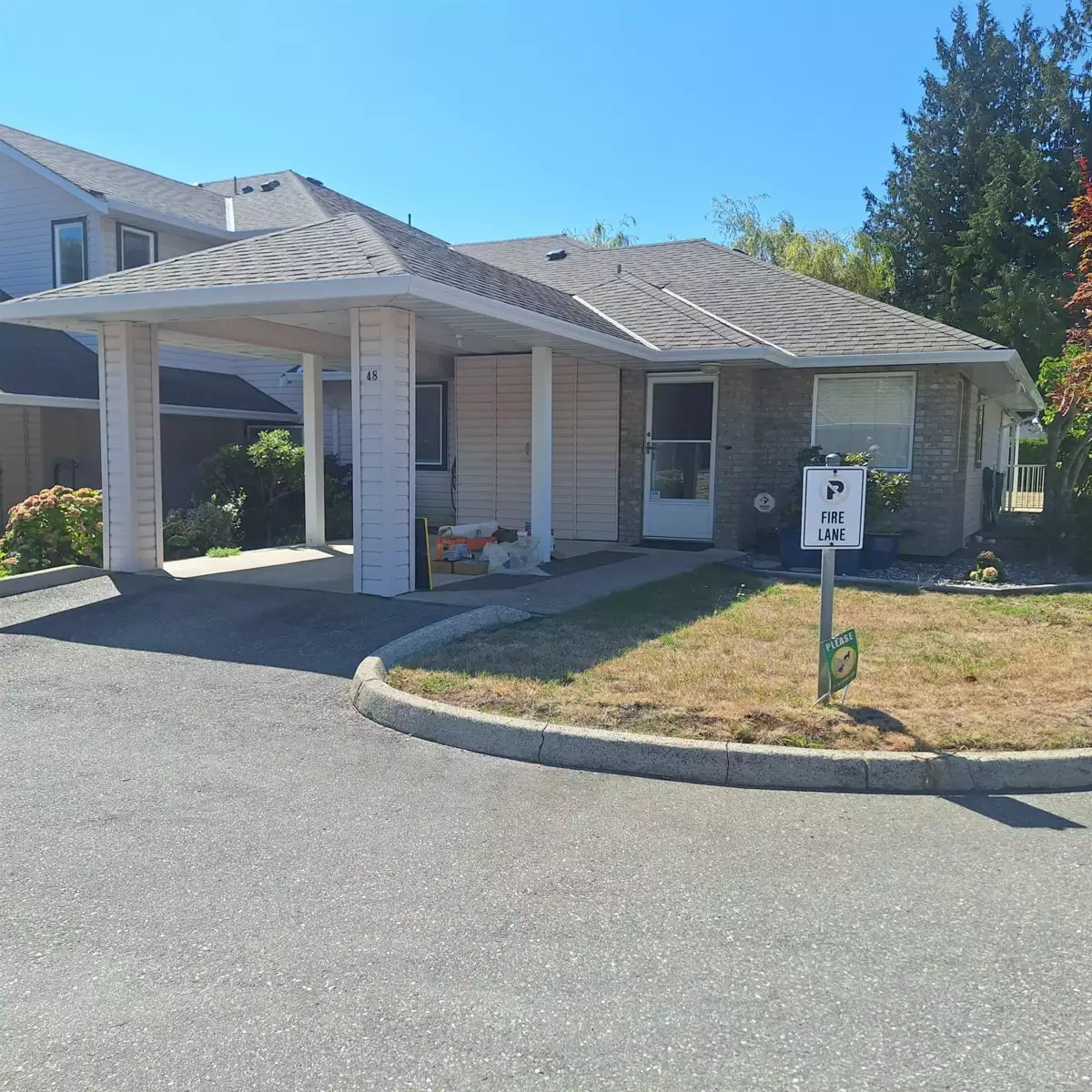 Rare Cottage Style end unit! No unit above! 55+ age restriction. Great affordable way to retire and relax! 2 bedroom/2 bathroom is clean and waiting for you decorating ideas! One covered parking spot plus one more. Community gardens, large clubhouse with lots of activities. Kitchen has a bright eating area. Living room leads out to covered deck. Large master with 3 piece ensuite and good sized second bedroom for guests! BE AWARE THIS IS NOT STRATA OWNERSHIP. It is a society so no mortgages. $520 monthly fees include taxes, insurance, electricity, gas, heat, maintenance and management. This will go fast so call for more info!