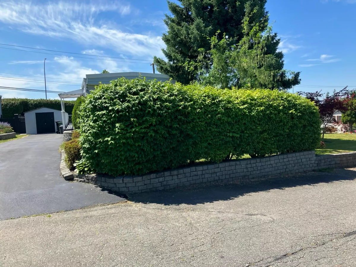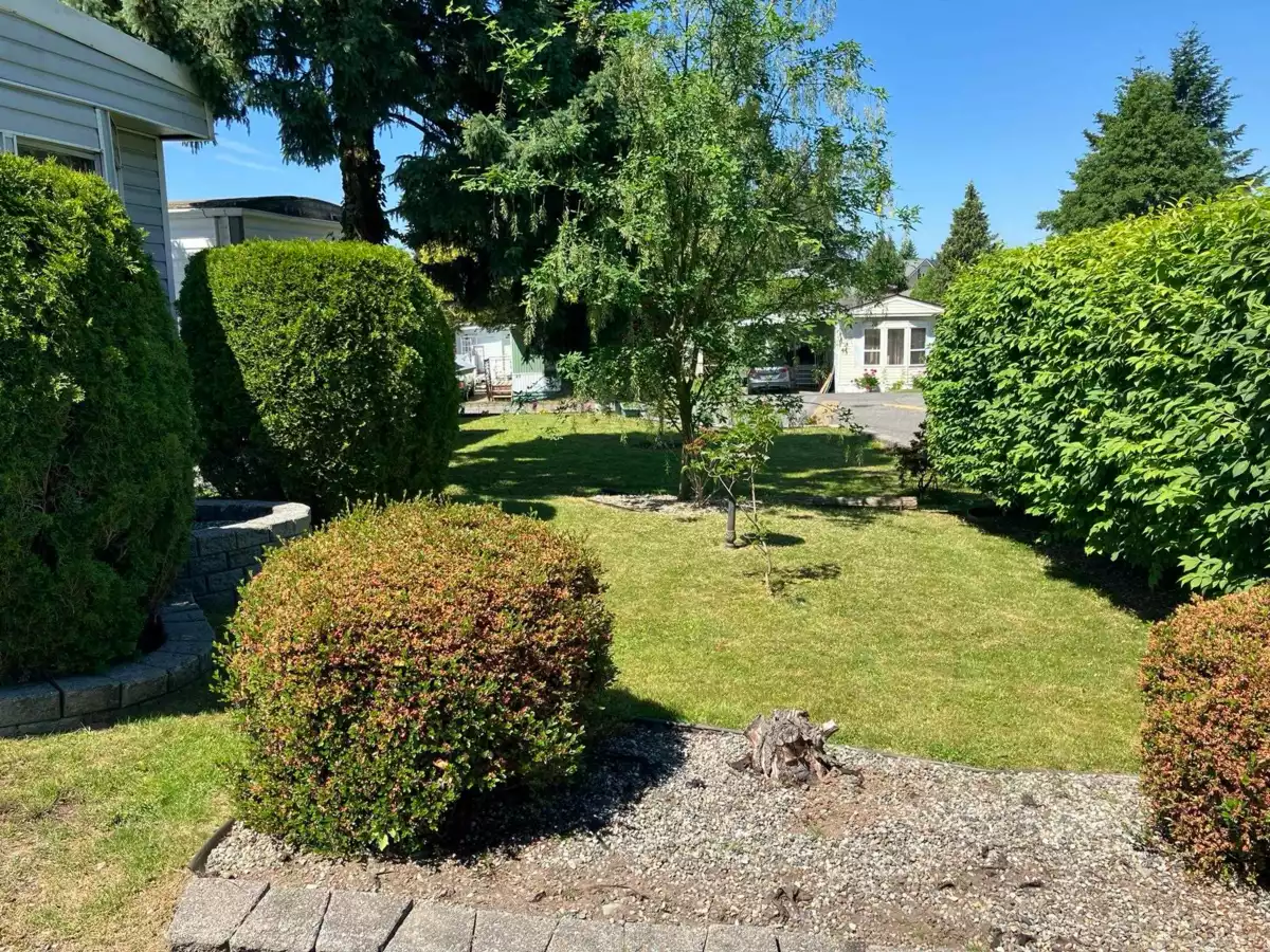 Tucked behind it’s row of decorative shrubs for privacy is this totally remodeled 2-bedroom vinyl sided home with a bright skylight kitchen. Recent new cabinetry featuring lots of counter area and kitchen island with flat top range. Double door refrigerator with water & ice maker. Stacking washer and dryer. Laminate flooring and new carpets. Full new paint in fresh current colours. Walk the deck from the entry door around to the entertaining size aluminum & glass railed private rear deck complete with gazebo and patio furniture or enter from the bonus size master bedroom. Fenced dog run area and a 10x10 shed for those extra garden tools or just those things you want to store. Off street parking for 3 vehicles. This is an age 55+ restricted community allowing 1 pet.