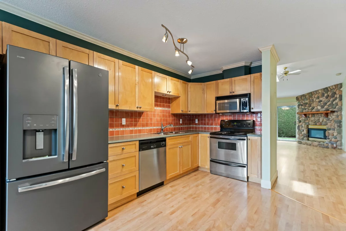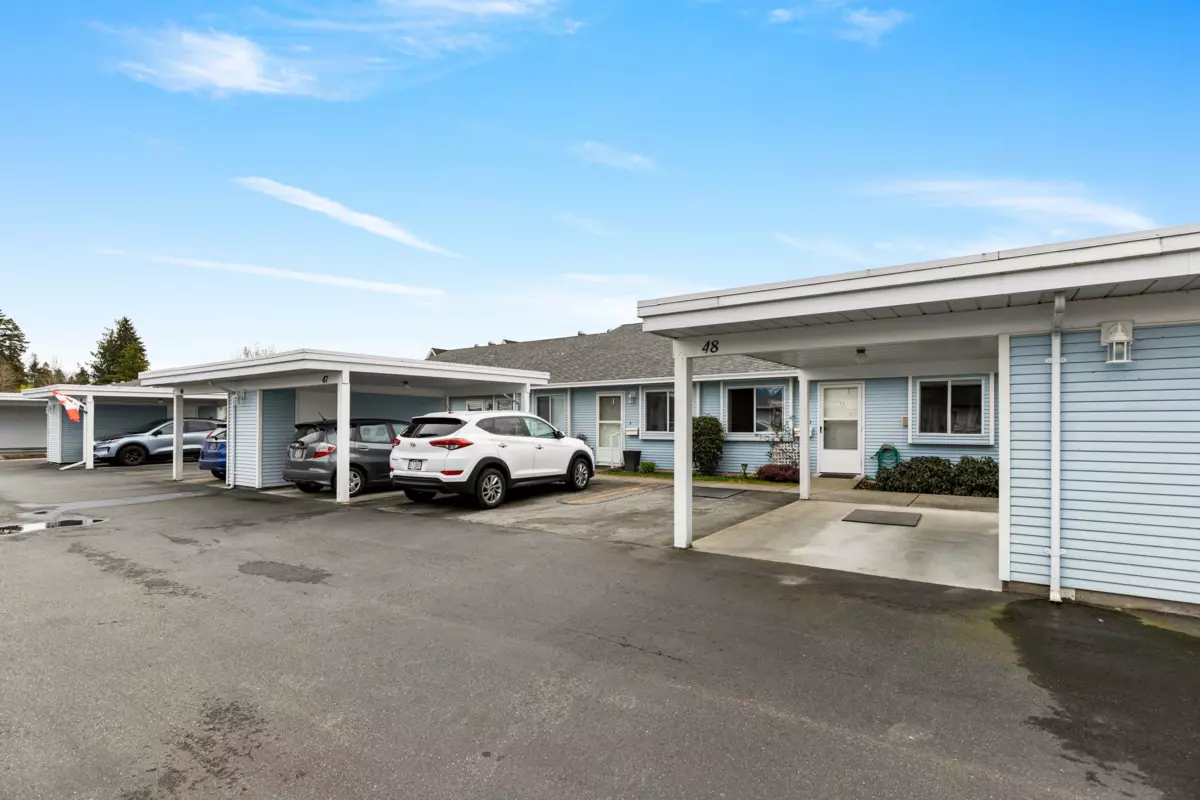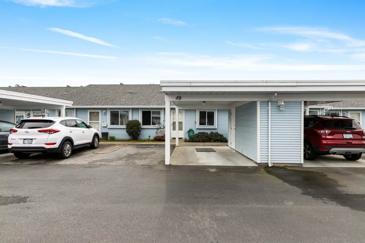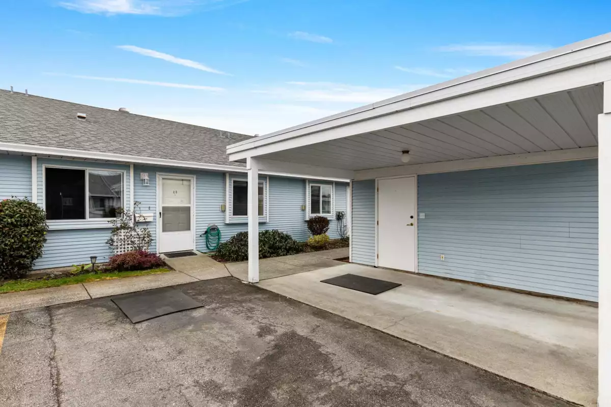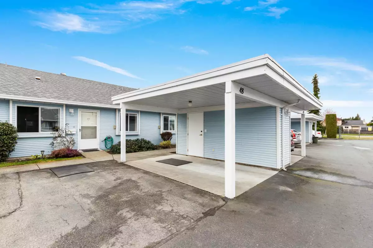 Sought after ST GEORGE'S VILLAGE '55 +' community, don't miss this ONE LEVEL RANCHER RANCHER STYLE TOWNHOME on crawl space! Located at the quiet side of St. George's w/ a south facing yard & private covered patio w/ privacy hedge, this squeaky clean home offers forced air heat, vaulted living/dining space, 2 BEDROOMS, full 4 pce main bath & 2 pce powder room! The laundry/utility room is great for storage & the gas fireplace w/ updated river rock surround heats the living space nicely. COVERED PARKING at your front door w/ a single carport PLUS another parking stall right beside! There's also a convenient storage area off the carport, great for seasonal storage or keeping a few tools around. Note this is a 'Cooperative' so NO MORTGAGES may be registered on title. Quick completion available!