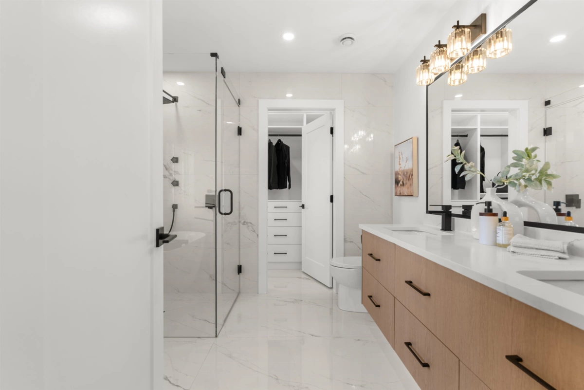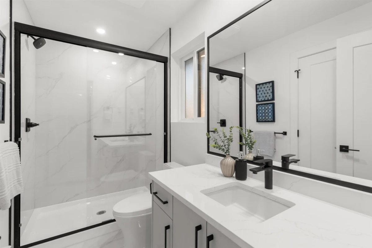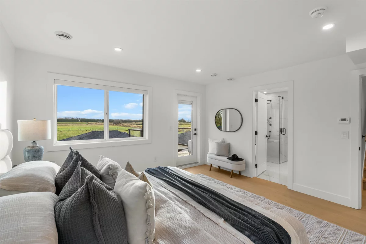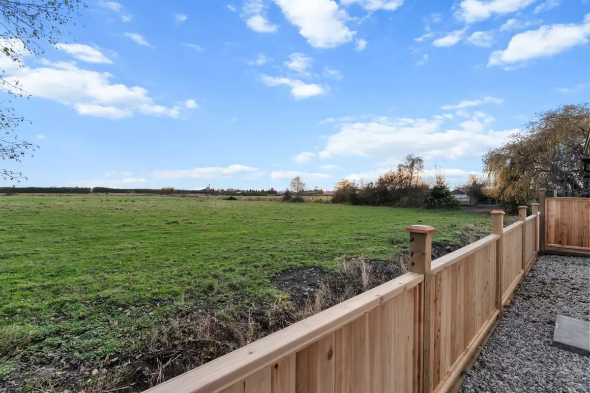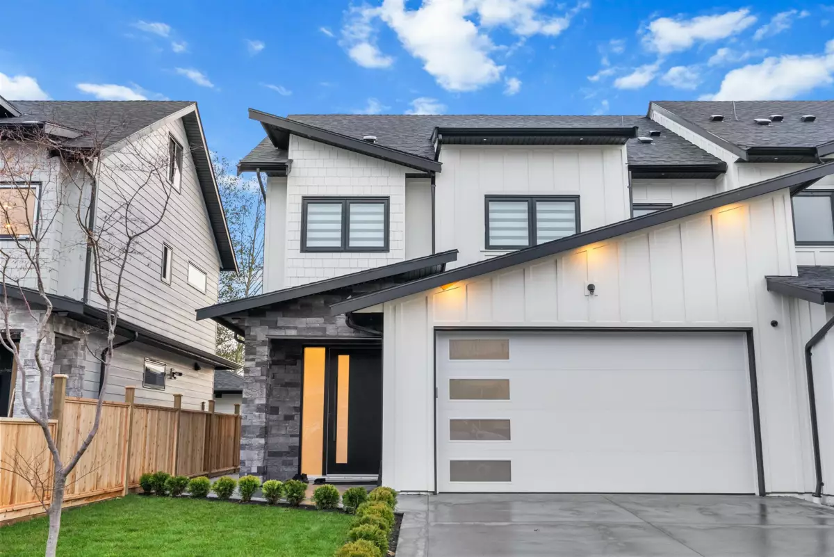 BRAND NEW 3-bedroom and Flex room, 2,126 sq. ft. 1/2 DUPLEX plus a BONUS detached 1-bedroom GARDEN SUITE! This thoughtfully designed home features an inviting open-concept layout with a bright living room with fireplace on beautiful feature wall. Dining area, and a spacious kitchen boasting an island, sleek quartz countertops, and premium finishes. Enjoy the durability of engineered hardwood floors, stylish designer lighting, and the convenience of a built-in vacuum, HRV system, and AC. The detached 2-car garage includes rough-in for EV charging. Nestled in a peaceful neighborhood backing onto farmland. Garden suite would be great for extended family or mortgage helper. This home offers easy access to Ladner Elementary School (French immersion), high school, and parks. OPEN SUNDAY 2-4
