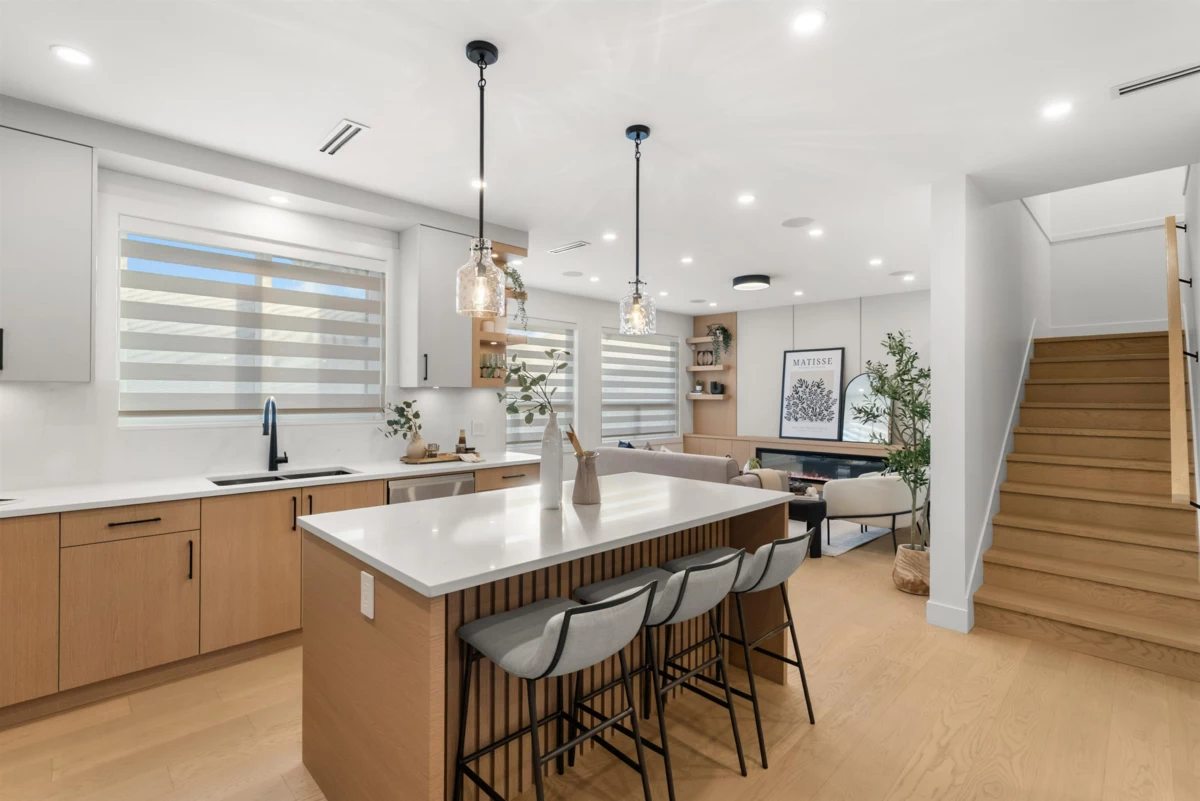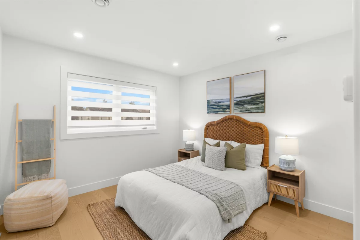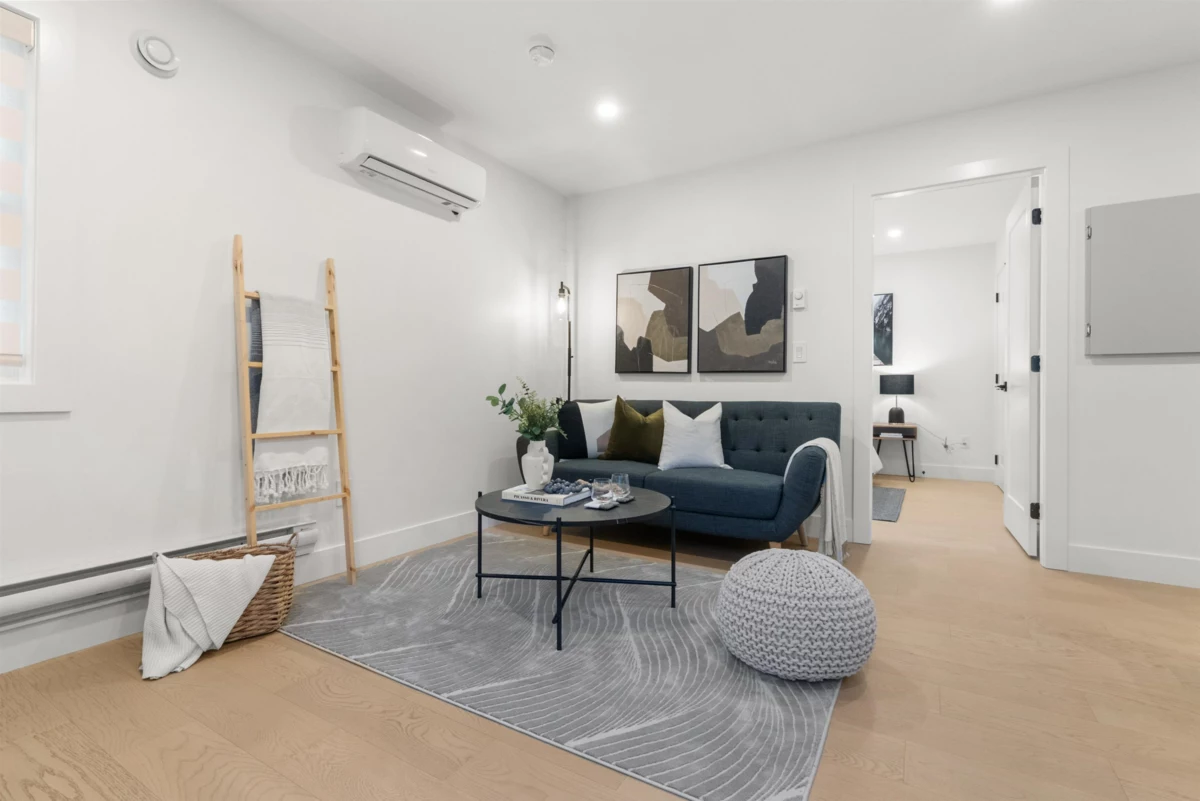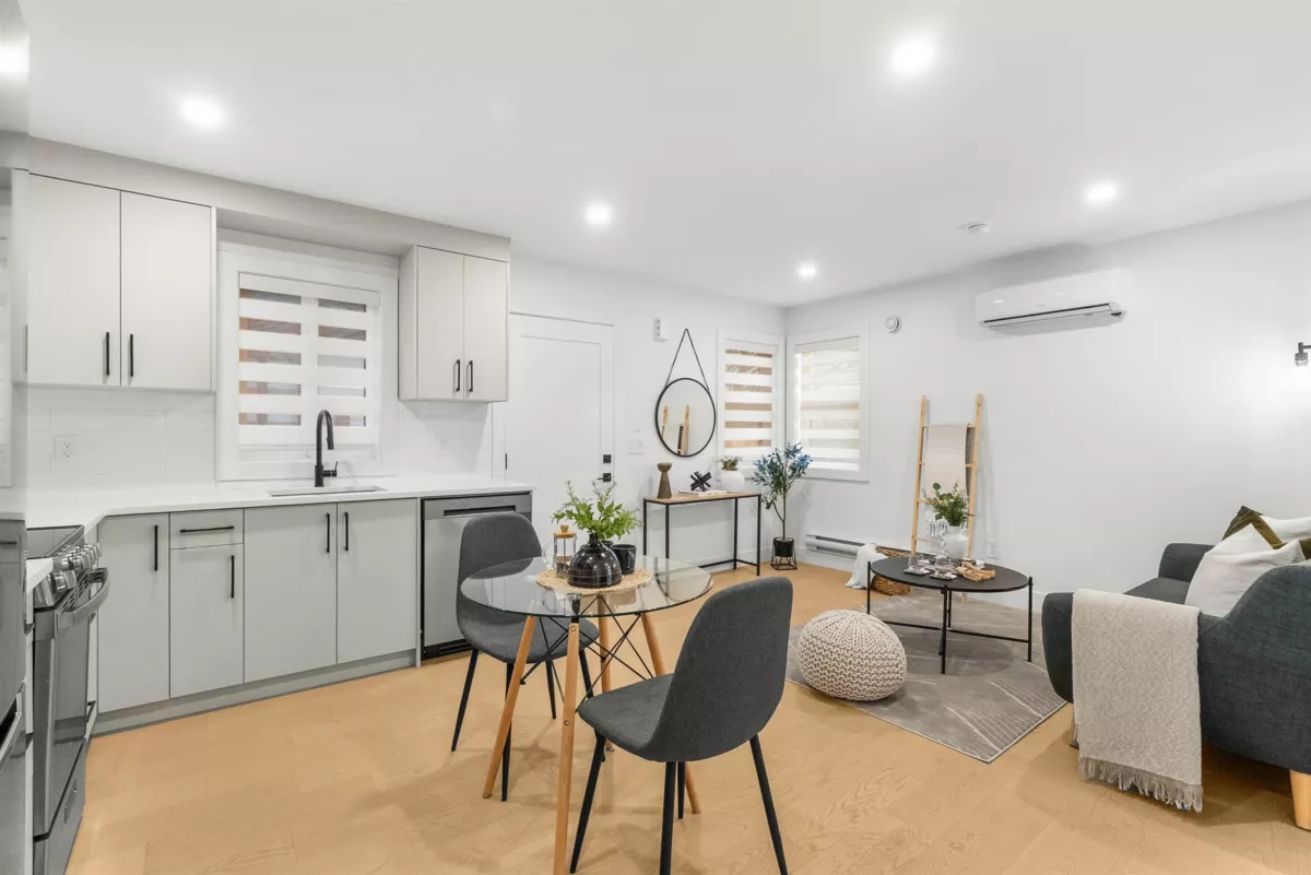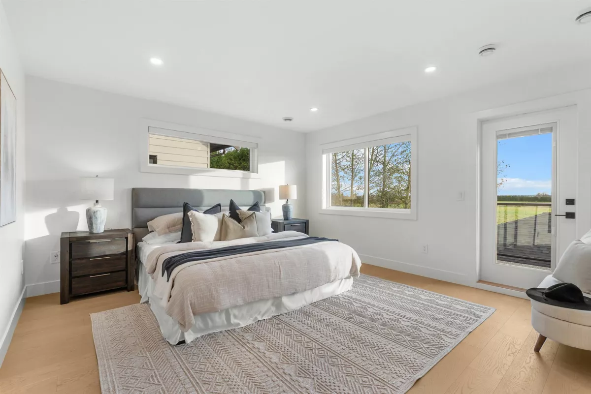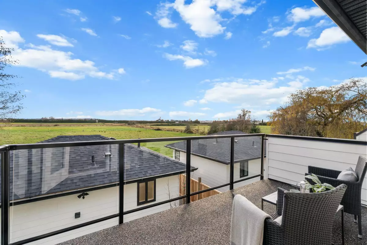 BRAND NEW 3-bedroom and Flex room, 2,126 sq. ft. 1/2 DUPLEX plus a BONUS detached 1-bedroom GARDEN SUITE! This thoughtfully designed home features an inviting open-concept layout with a bright living room with fireplace on beautiful feature wall. Dining area, and a spacious kitchen boasting an island, sleek quartz countertops, and premium finishes. Enjoy the durability of engineered hardwood floors, stylish designer lighting, and the convenience of a built-in vacuum, HRV system, and AC. The detached 2-car garage includes rough-in for EV charging. Nestled in a peaceful neighborhood backing onto farmland. Garden suite would be great for extended family or mortgage helper. This home offers easy access to Ladner Elementary School (French immersion), high school, and parks.