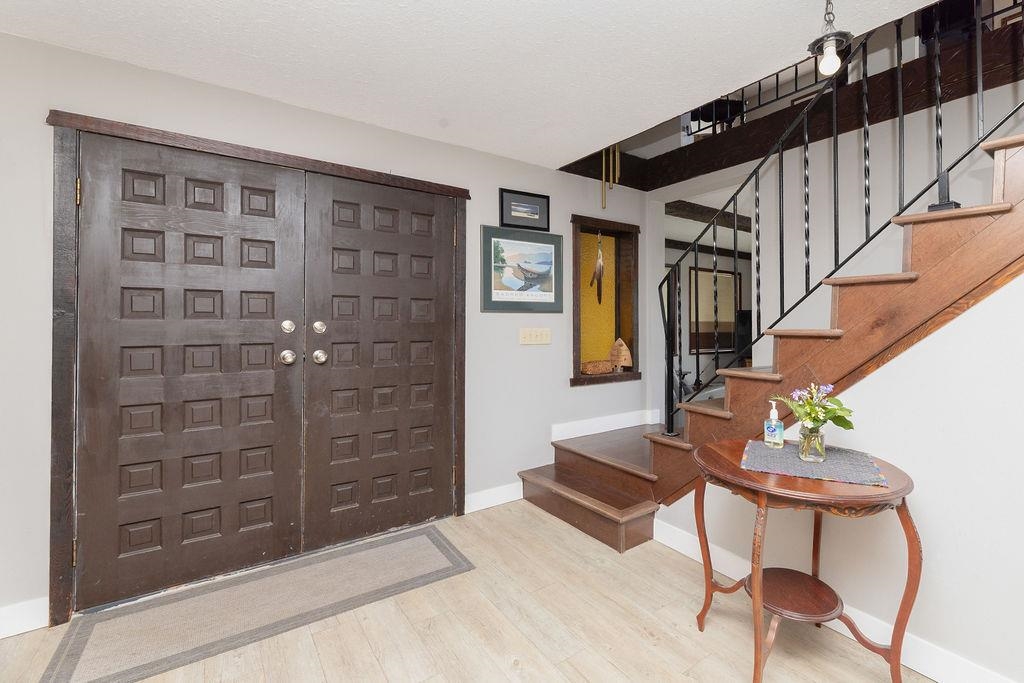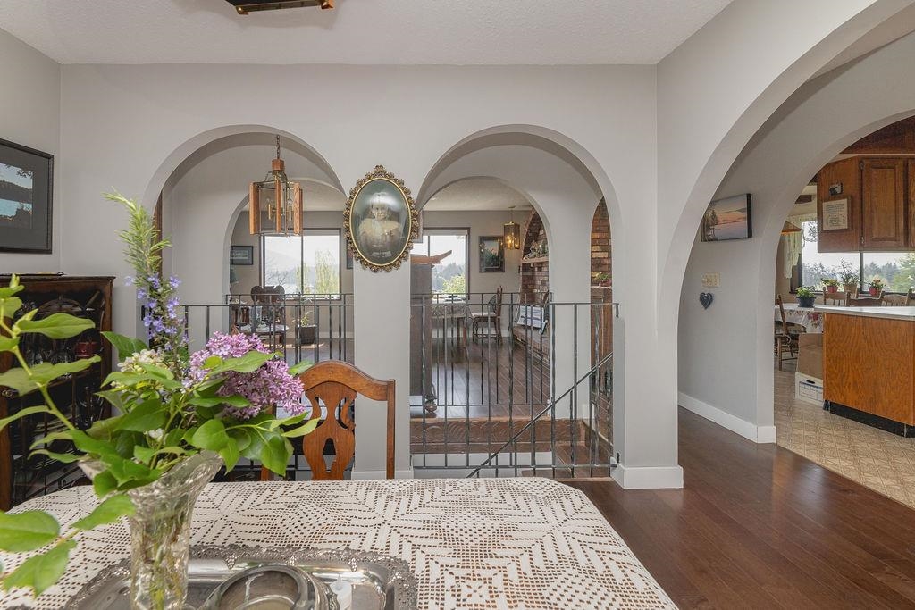 This unique home blends charm, space, and stunning views. The architecture embodies a Spanish style with arched accents throughout, stucco exterior, and a clay tile mansard roof. The main living space offers a warm, inviting feel with large, view-facing windows and a wood-burning fireplace. The kitchen is spacious and functional, with an adjoining breakfast area. The main floor also features three of the home's bedrooms, a dining area, and decks off the living space. The lower level includes a large foyer, a separate family room with a natural gas fireplace, an additional bedroom, large storage room, and laundry room. Other features include a double carport and enclosed storage area, established vegetable gardens, and plenty of room to expand. Lots of privacy and unbeatable location!