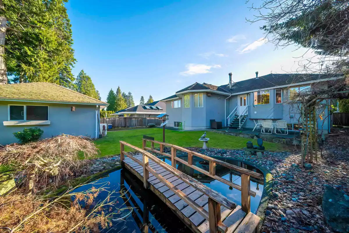 Located in the highly sought-after Upper Tsawwassen area just minutes from the beach, this custom owner-built 3-bedroom, 3-bathroom rancher delivers both comfort and future possibilities. Set on a sunny 8,300+ sq ft lot, the property features a tranquil pond and a powered workshop to suit a range of hobbies. The primary bedroom offers a peaceful retreat with an oversized ensuite, a spacious walk-in closet, and large windows overlooking the park-like backyard. The generous 1,680 sq ft unfinished basement presents endless potential—ideal for a secondary suite, home gym, media room, extra bedrooms, or any vision your family may have. This home truly offers something for everyone, combining flexibility with an exceptional location.