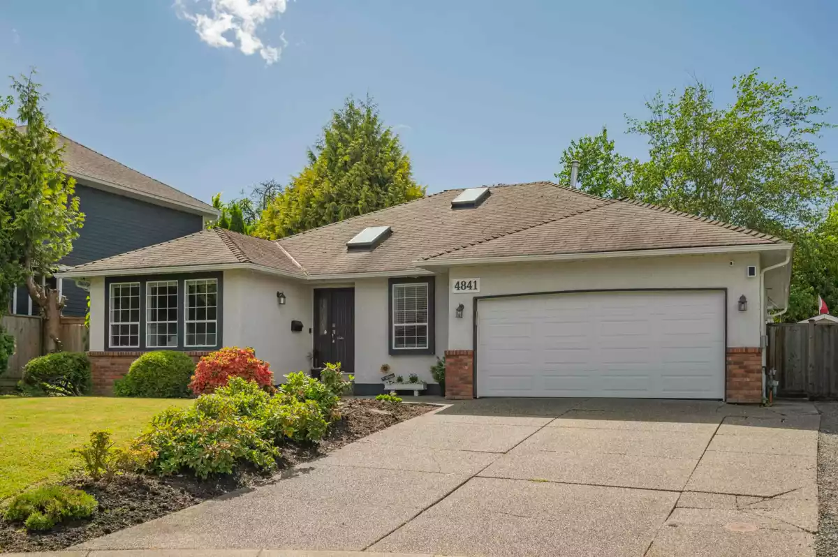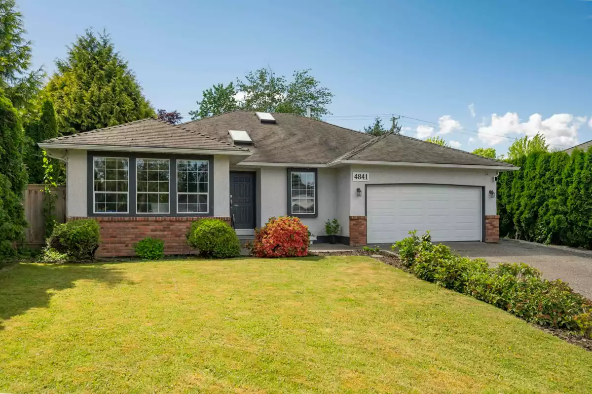 Beautiful 1546sf rancher on a large flat 8188sf lot in a cds location. Great layout featuring your living room/dining room then head to your kitchen w/eating area and family room. Large primary w/walk in closet and 4 piece ensuite. 2 more bedrooms + another 4 piece bathroom (cheater ensuite), big laundry room. Lots of storage. Hot water tank 2019, 2 skylights 2021, gutters 2020, kitchen fully updated in 2011 w/granite countertops and breakfast bar, roof 2015. Access to your fully fenced backyard oasis! Covered deck with mature trees, hot tub, beautiful pond, shed, great landscaping. Double garage + apron parking, RV parking. Room for all your toys! Close to great schools, transit, Newlands Golf Course, shopping, nature trails and more amenities. Quick possession available!