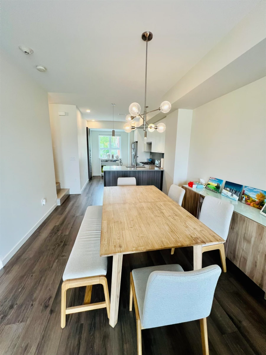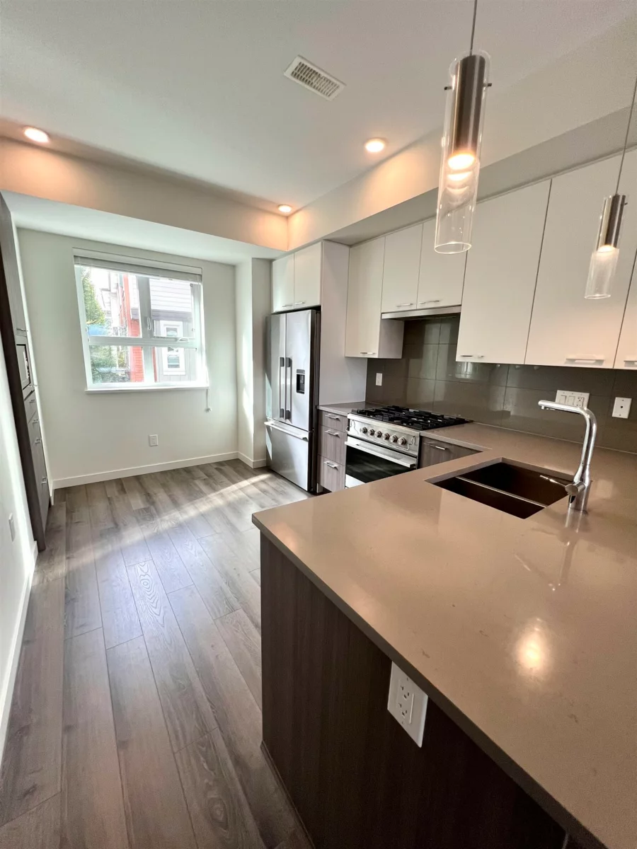 Welcome to Northview Estate! Discover the perfect blend of luxury, comfort, and stunning natural beauty in this almost brand new condition townhouse. Backing directly onto a view of a river and snow mountains. This home boasts 4 bedrooms and 4 baths, providing ample space for families of all sizes. The top-floor ensuite can act as a 2nd primary bedroom complete with a huge balcony. UPGRADED LAMINATE flooring on every floor! The extra-large, gourmet kitchen outfitted with Fisher & Paykel S/S appliance, Quartz countertops, and both gas stovetop/oven. It's also equipped with energy efficient Geothermal heating/cooling system ensuring warm Winter and cool Summer! EV Charging outlet! Minutes drive to Bridgeport Skytrain Station! 200K below BC Assessment Mtn fees includes Utility fees and water!