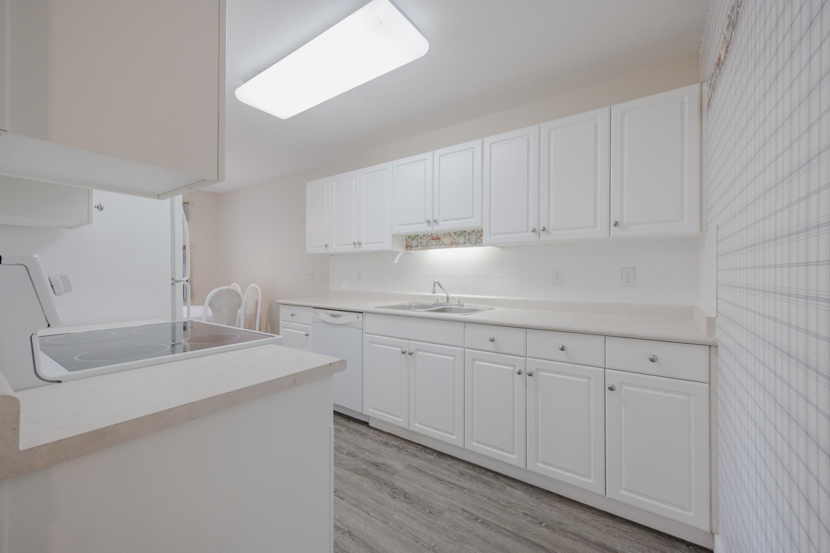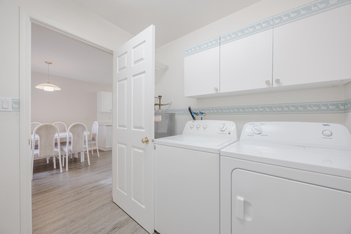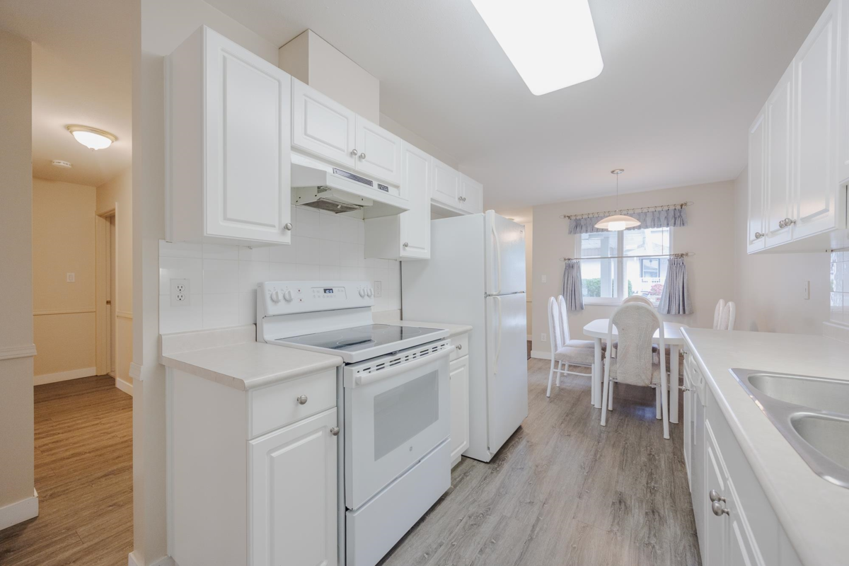 Beautiful 2 bed and 2 bath lower level townhouse in a fabulous retirement community! Everything you need without breaking the bank! New walk-in shower in the main bath, newer flooring, bright sunny kitchen, gas fireplace, huge laundry room with great storage! Room for your freezer. Under stairs storage and locked outside storage. Sunny, covered patio, 2 parking spots, community gardens, lovely clubhouse and low monthly fees of $540 includes taxes, heat, electricity, management, insurance and water. This is not Strata. It is a membership therefore not mortgages possible. 55+ age restriction, No smoking, 1 small pet, max 2 occupants. A great way to live out your retirement in an active community with lots to do! Must be CASH.