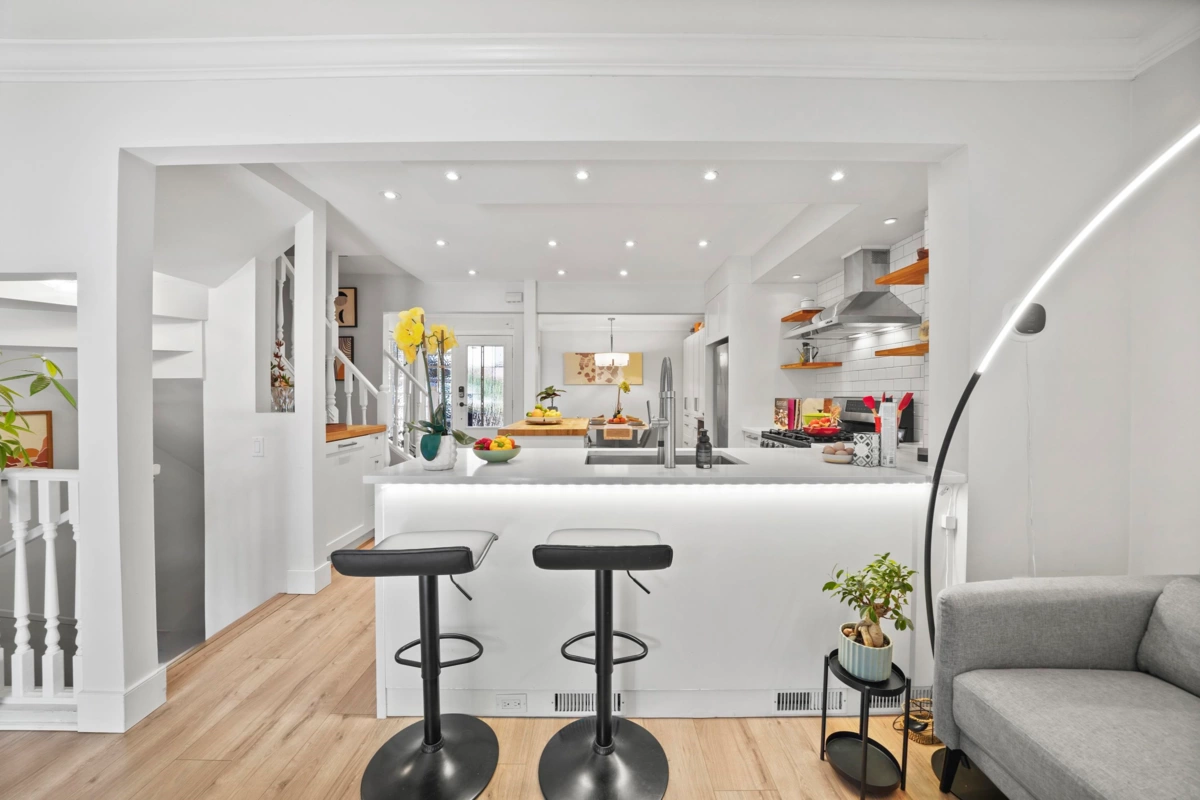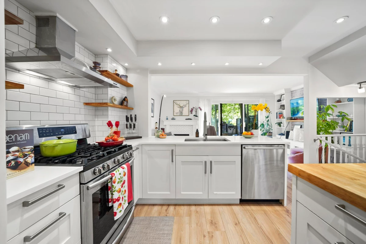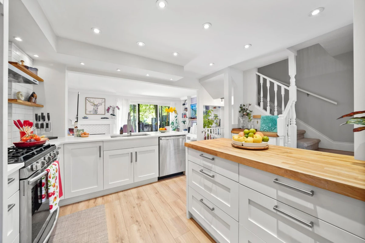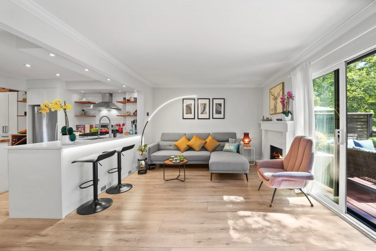 Welcome to your new home — where the comfort of a detached house meets low maintenance townhome with modern finishing! Nestled in a quiet, tree-lined community, this SE-facing home offers privacy, space & a seamless indoor-outdoor lifestyle w/ newly painted 325sqft patio. Enter from your front porch by the carport w/ overhead storage, or through your private gate. The open-concept chef’s kitchen features Caesarstone quartz counters, s/s appliances, gas stove, & a centre island perfect for entertaining or a growing family. Upstairs boasts 3 beds incl a spacious primary w/ custom closets & renovated bath. The lower level offers a family room, den/4th bedroom, laundry, & extra storage. Close to parks, schools, shops, rec centre, transit, & trails—this home is West Coast living at its best!