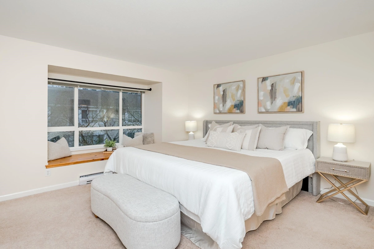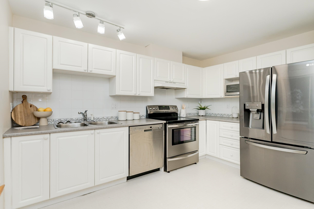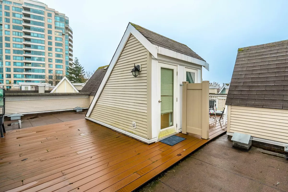 Well-maintained 2-bedroom upper-level townhouse in the sought-after Tudor Grove community, ideally located in Burnaby South’s Highgate neighbourhood. Bright open-concept living and dining area with gas fireplace and spacious kitchen. Enjoy excellent outdoor space with a large patio and a private rooftop deck with views. Recent updates include laminate flooring (2024), new refrigerator (2023), and brand-new dishwasher. Upstairs features two bedrooms with a Jack-and-Jill bathroom including a separate soaker tub and shower. Enjoy excellent outdoor living with a large patio and a private rooftop deck with views. Roof deck and fencing were upgraded by the strata around 2018. Walking distance to Highgate Village, SkyTrain, parks, and schools. Just 10 minutes to Metrotown.