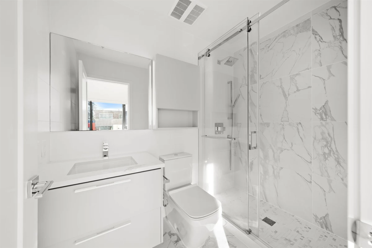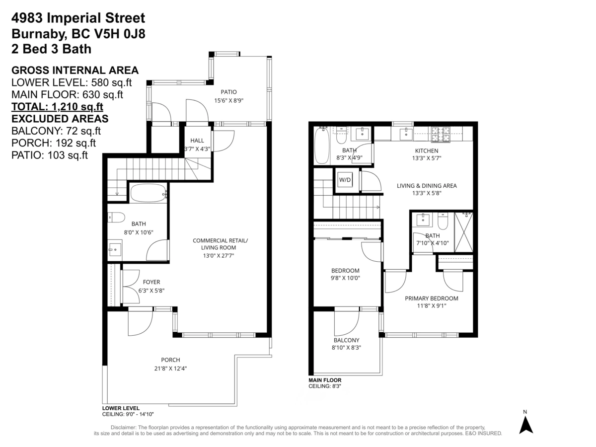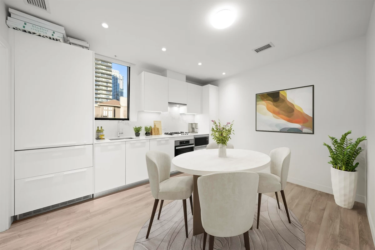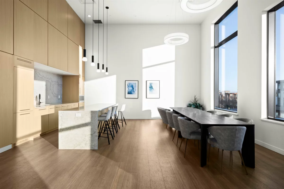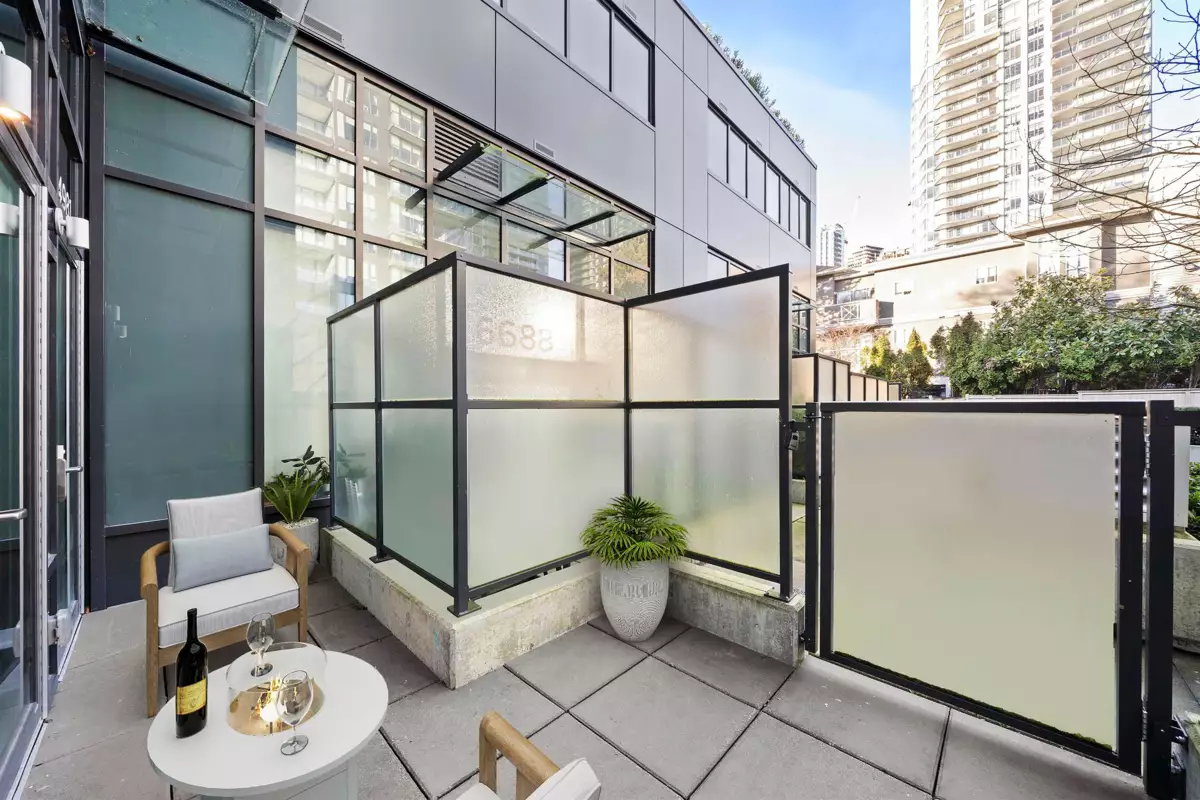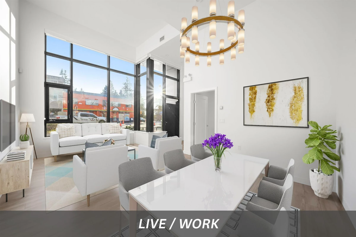 This two-level, AIR-CONDITIONED LIVE / WORK residence offers flexibility w/ fully lock-off units and separate private entrances, allowing each level to be rented or used independently. The street-level floor is ideal for a service based business, while the upper level provides a residential retreat connected by an internal stairwell. Enjoy 14-foot ceilings, premium Miele appliances, Italian-crafted cabinetry, along with 2 generously sized bedrooms & spa-inspired bathrooms. Amenities: fitness centre, golf simulator, meeting rooms, club house, guest suite, & social lounge w/ BBQ area, perfect for entertaining. Located within walking distance to SkyTrain, shopping, dining, and entertainment, this versatile home delivers both convenience and an effortless lifestyle. MUST SEE VIRTUAL TOUR!