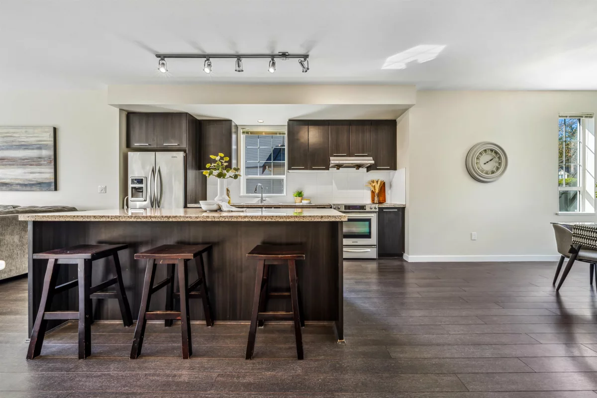 RARELY AVAILABLE, South-Facing End Unit Townhome at Farrington Park, one of Burke Mountain's most desirable communities. This 3 Bed/3 Bath home boasts 1,682 sq.ft., open concept design, powder rm on main, expansive windows, 9ft ceilings, new paint, large balcony, & pristine landscaping w/ a gated yard. Gourmet kitchen features a spacious island, S/S appliances, & granite counters. Primary Bdrm offers gorgeous city/valley views, his/her closets, & ensuite w/double vanity. PRIME LOCATION, next to Galloway Park (playground, sports court, water park, picnic area) & walk to Smiling Creek Elementary, shopping, & transit. INCREDIBLE VALUE, steps away from the Future Middle/Secondary School/Recreation & Future Masterplan Community of Burke Mountain Village.